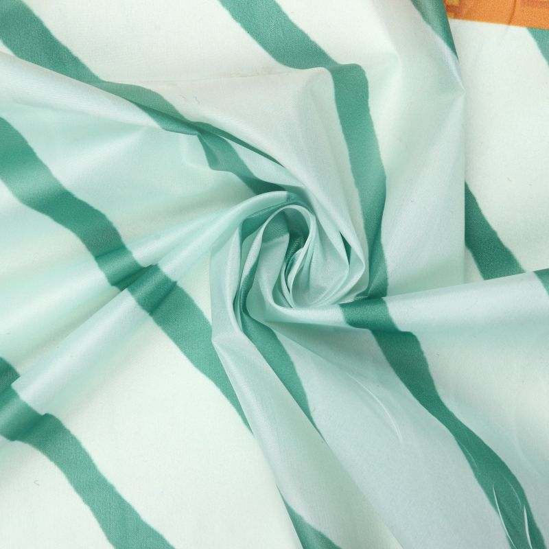 Sea Green And White Leheriya Pattern Digital Print Liquid Organza Fabric