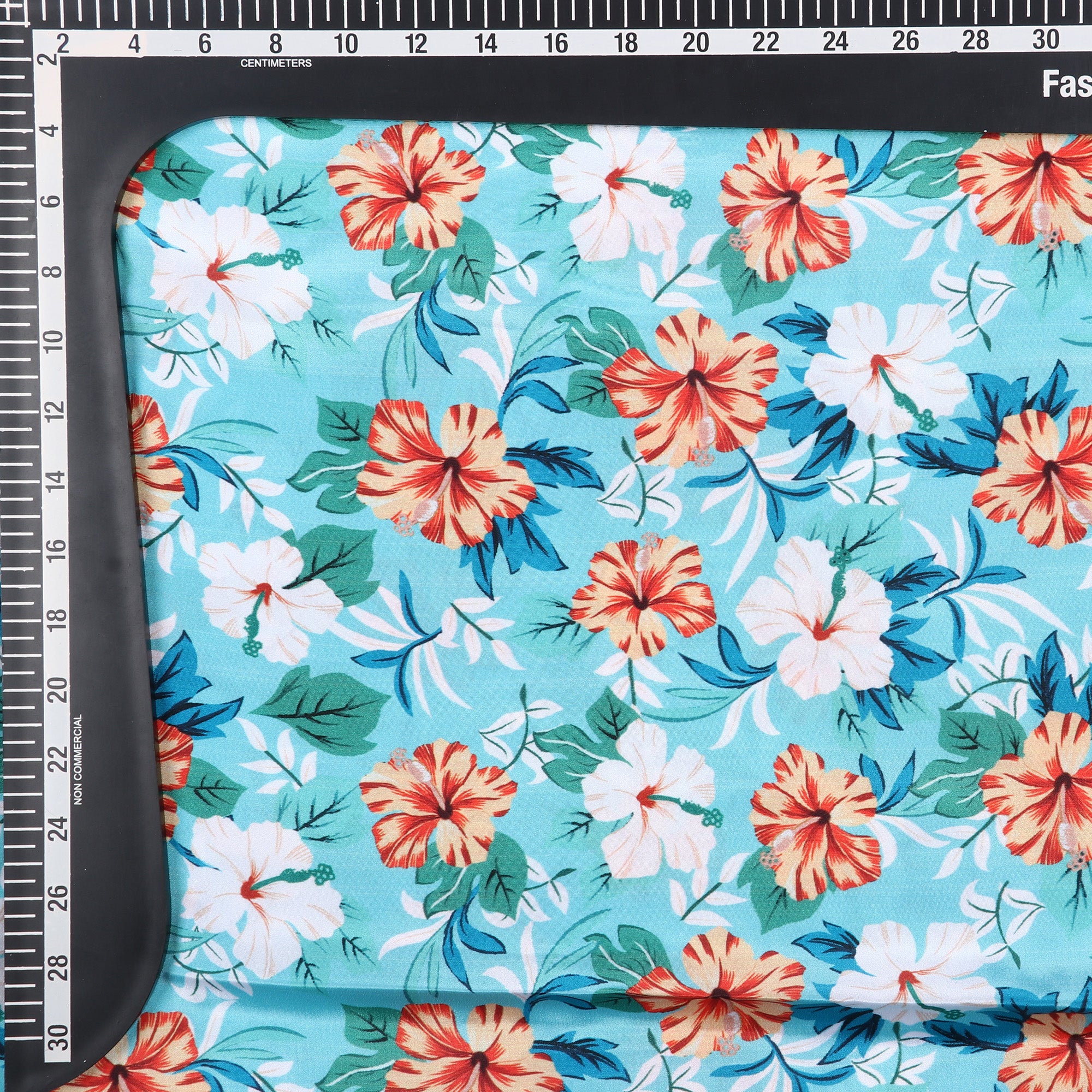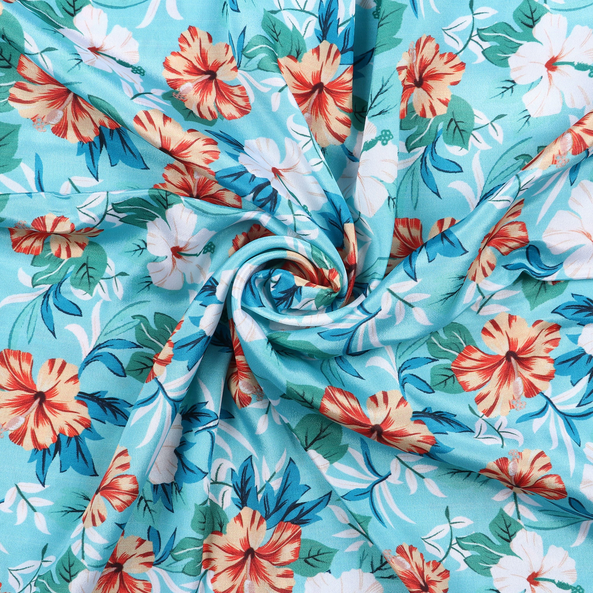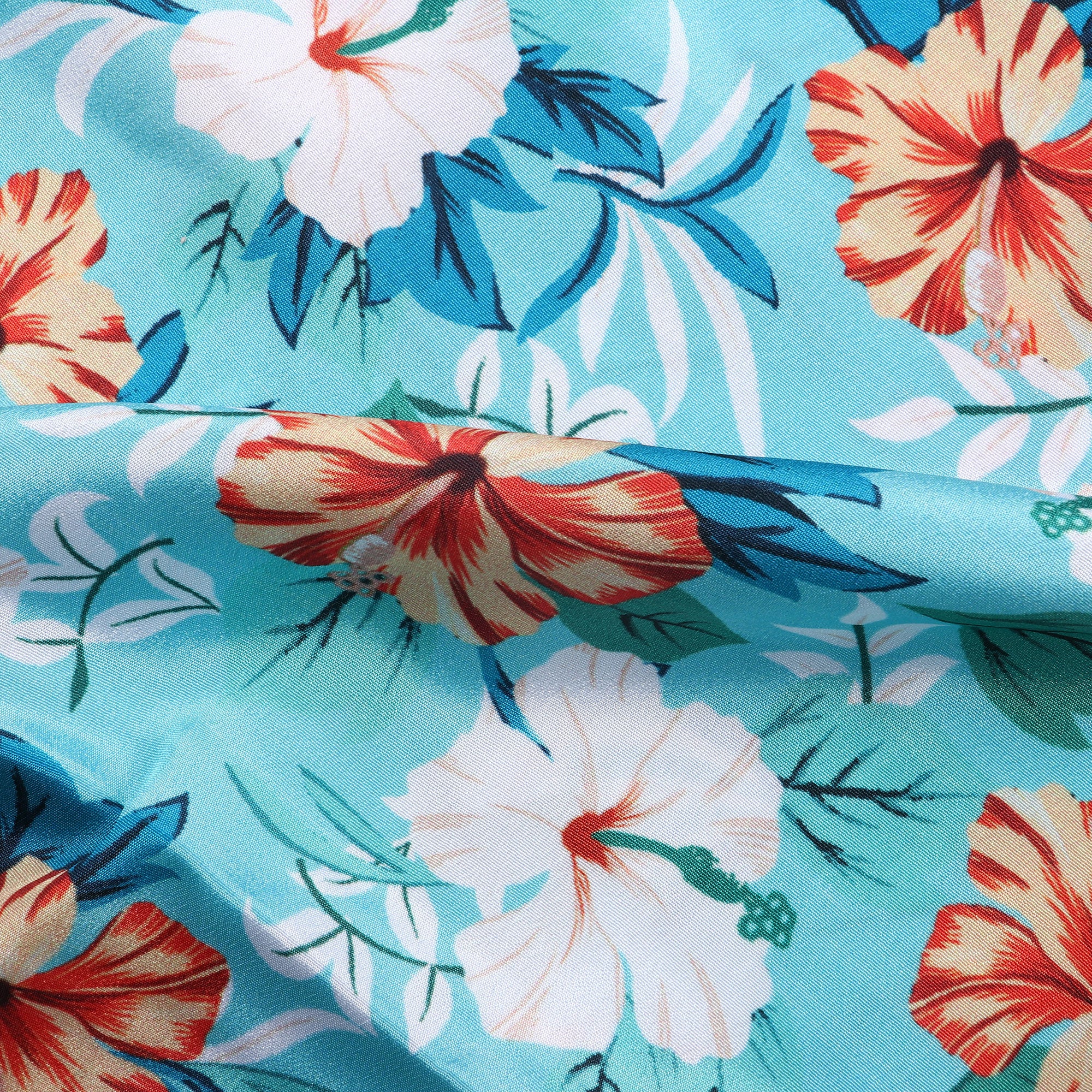 Sky Blue And Dark Orange Floral Pattern Digital Print Silk Crepe Fabric