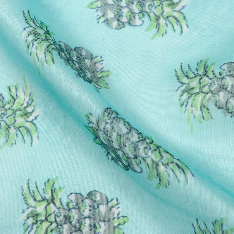 Sky Blue And Green Floral Pattern Digital Print Chanderi Fabric