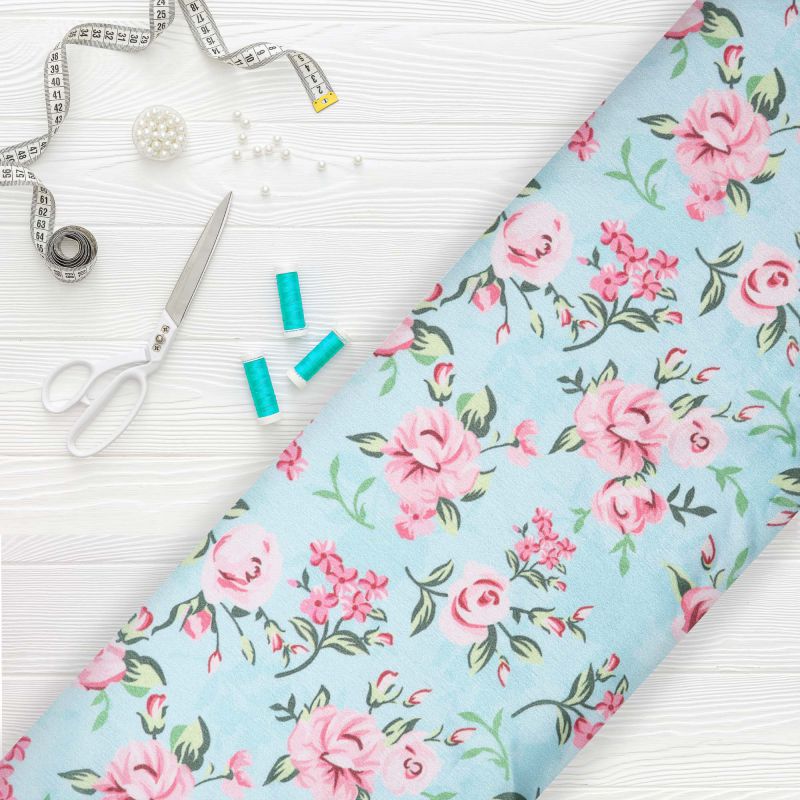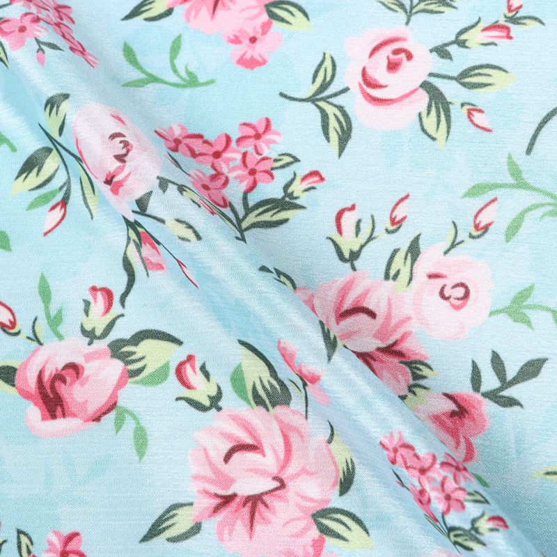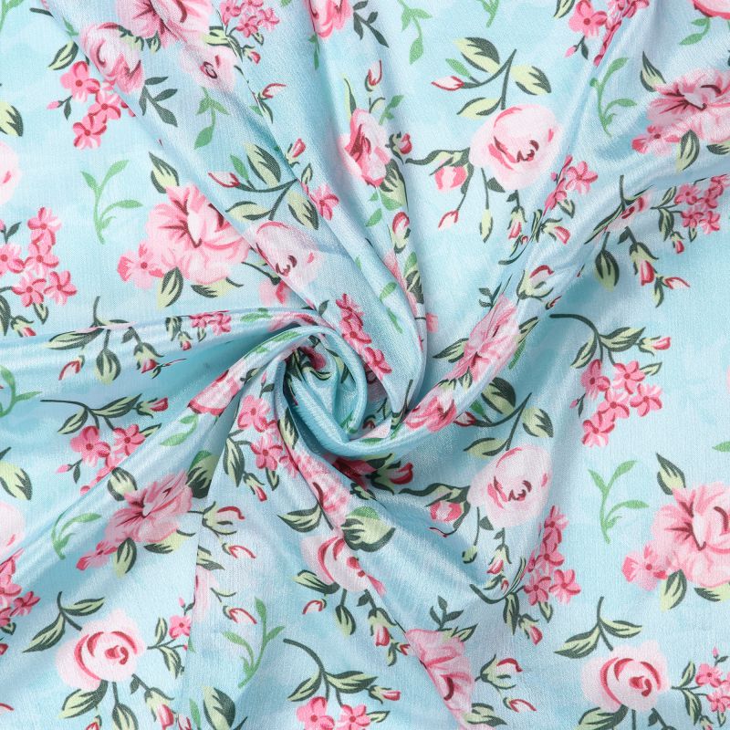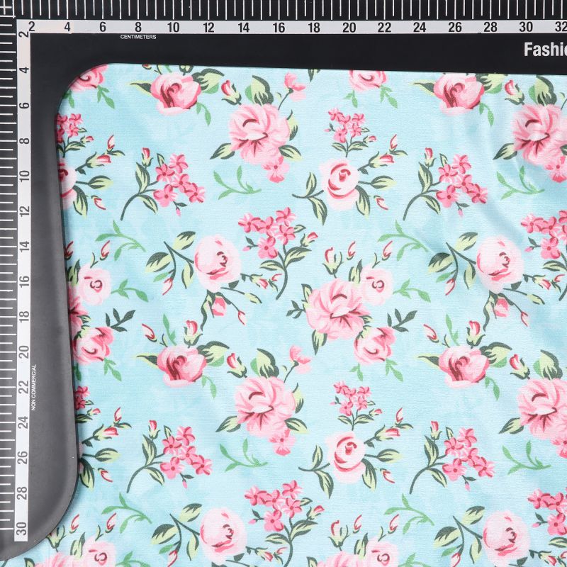 Sky Blue And Pink Floral Pattern Digital Print Chinon Chiffon Fabric