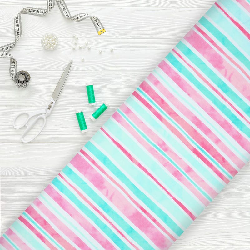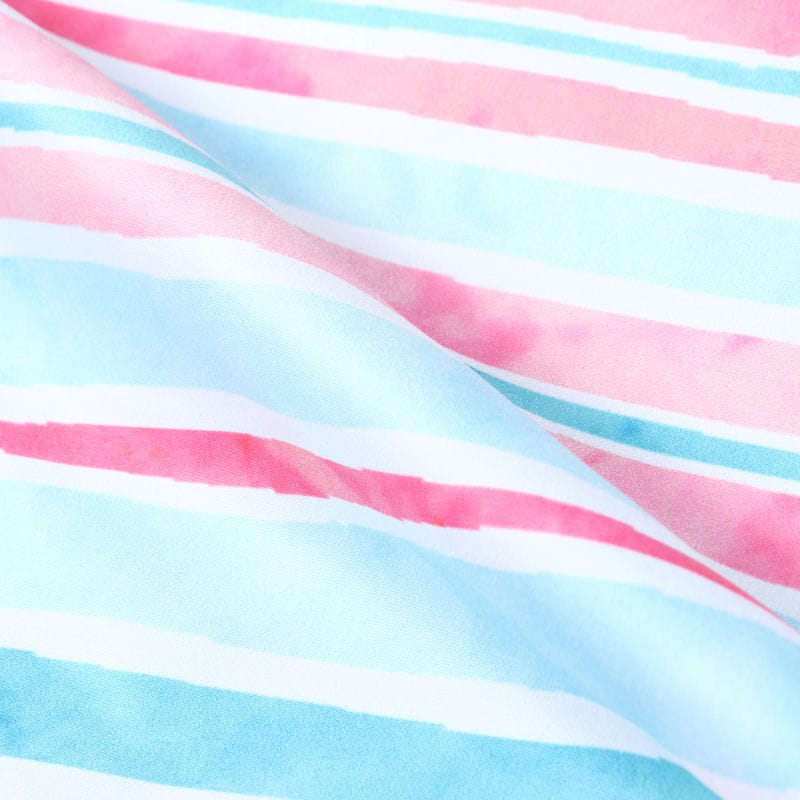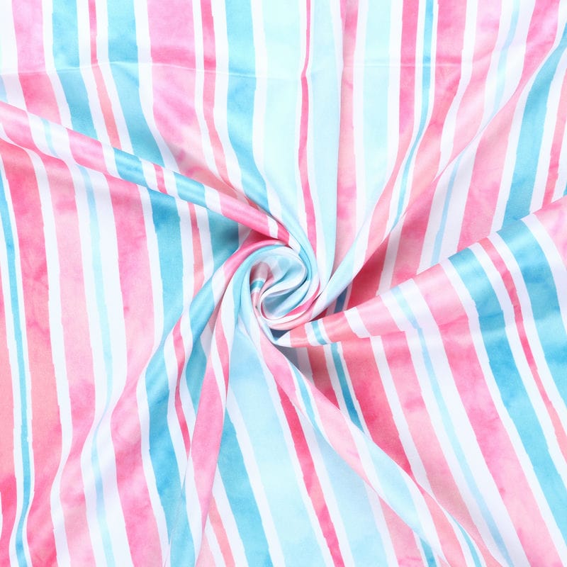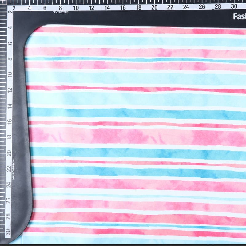 Sky Blue And Pink Stripes Pattern Digital Print Silk Satin Fabric