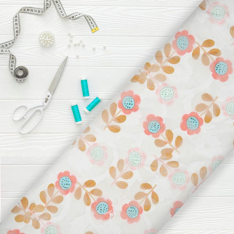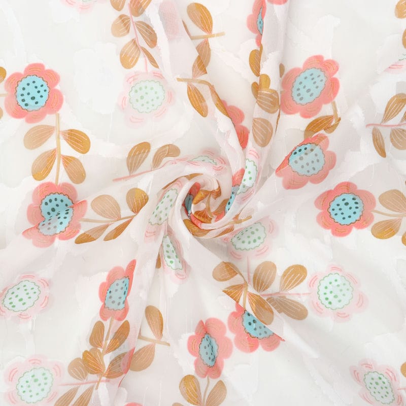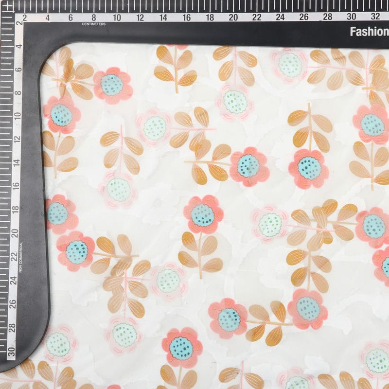 Sky Blue And White Floral Pattern Digital Print Georgette Jacquard Fabric