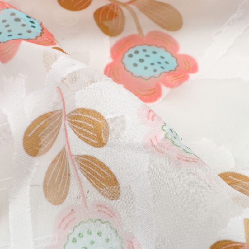 Georgette jacquard fabric is a luxurious and elegant textile with a unique woven design. It offers the perfect balance of versatility and style, making it ideal for a variety of formal and casual wear. The delicate and intricate jacquard pattern adds a touch of sophistication to any garment, while the lightweight and flowy georgette material provides comfort and movement. Whether you're dressing up for a special occasion or simply want to add some texture to your everyday wardrobe, georgette jacquard is the perfect choice.