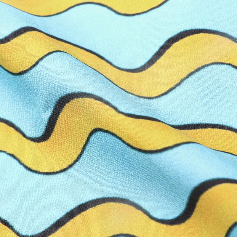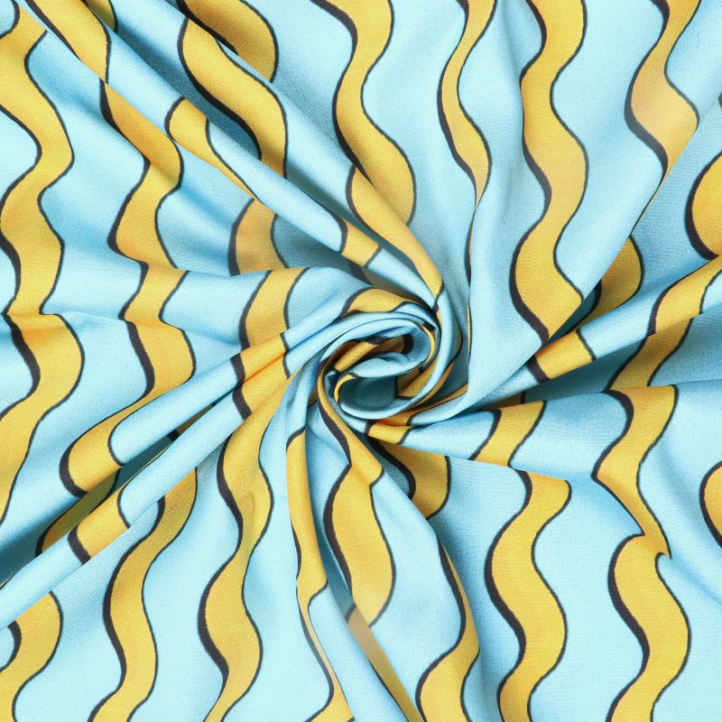 Sky Blue And Yellow Stripes Pattern Digital Print American Crepe Fabric