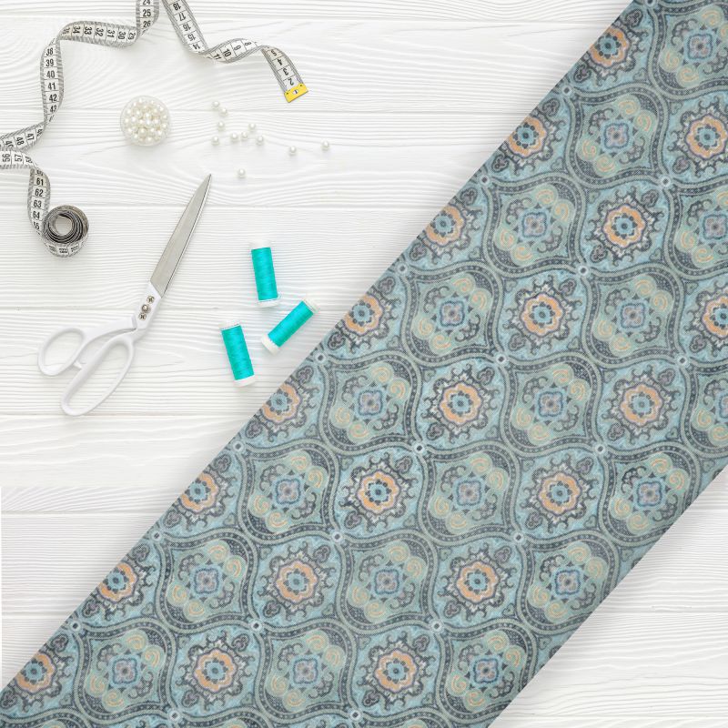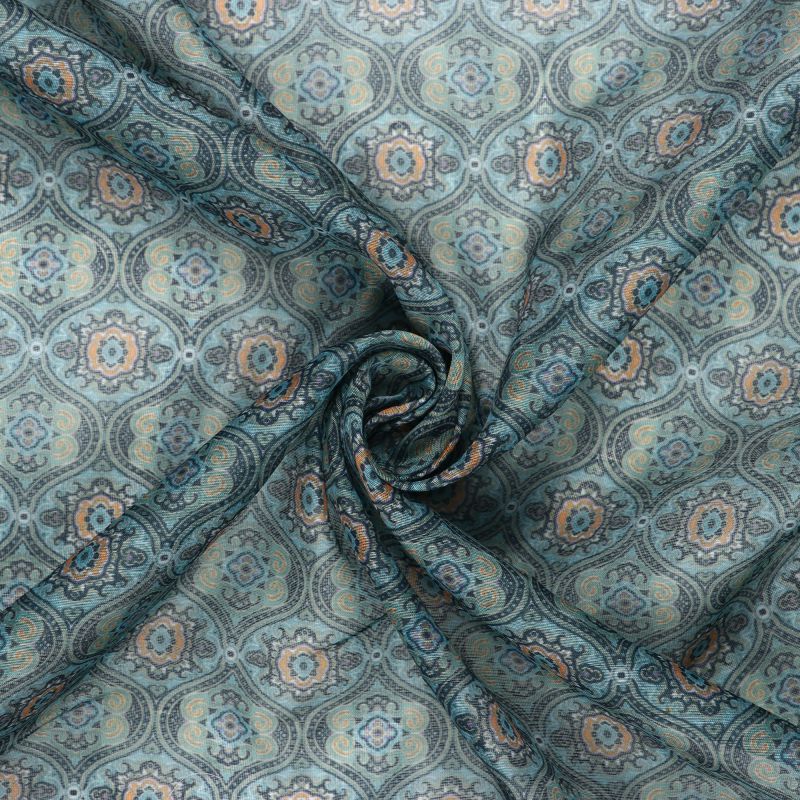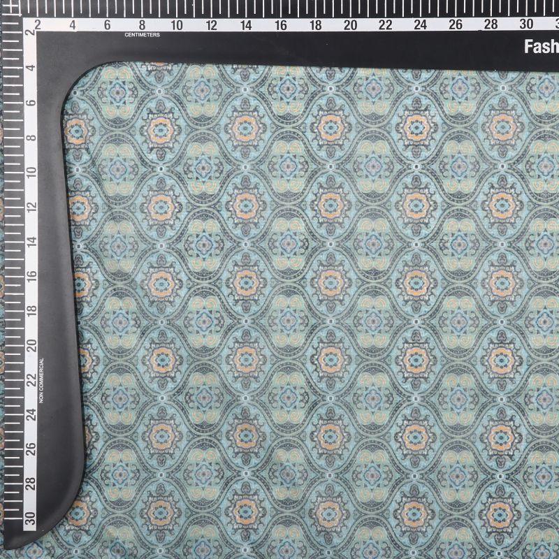 Tea Green And Ocen Blue Trellis Pattern Digital Print Chanderi Fabric