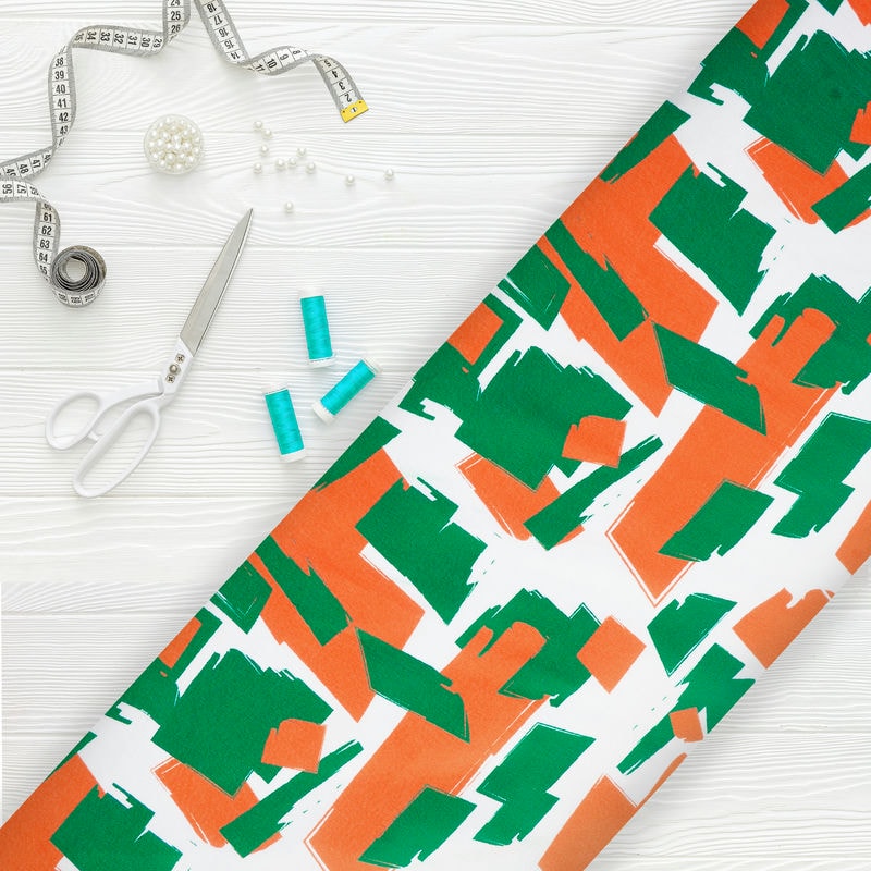 Tricolor Abstract Pattern Digital Print Japan Satin Fabric