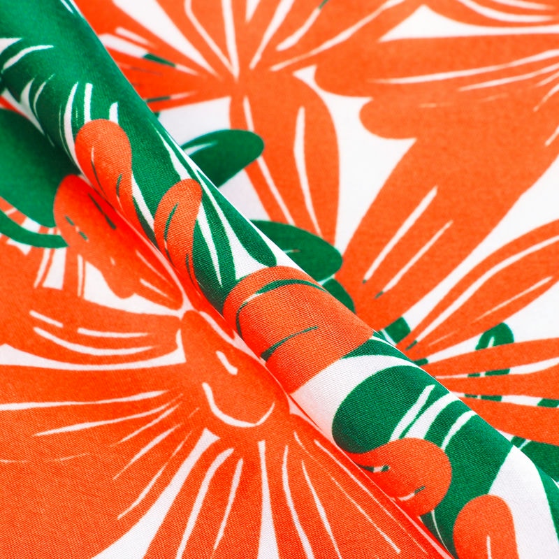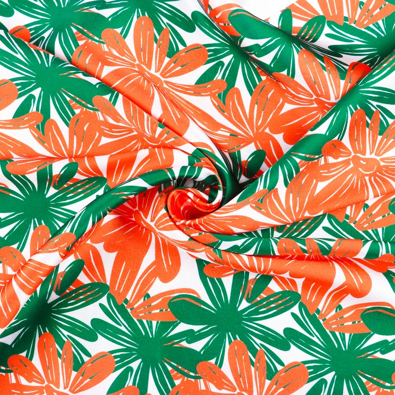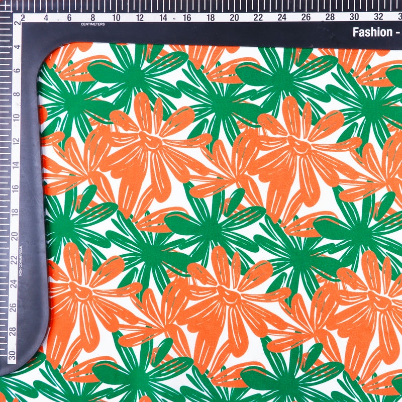 Tricolor Floral Pattern Digital Print Japan Satin Fabric