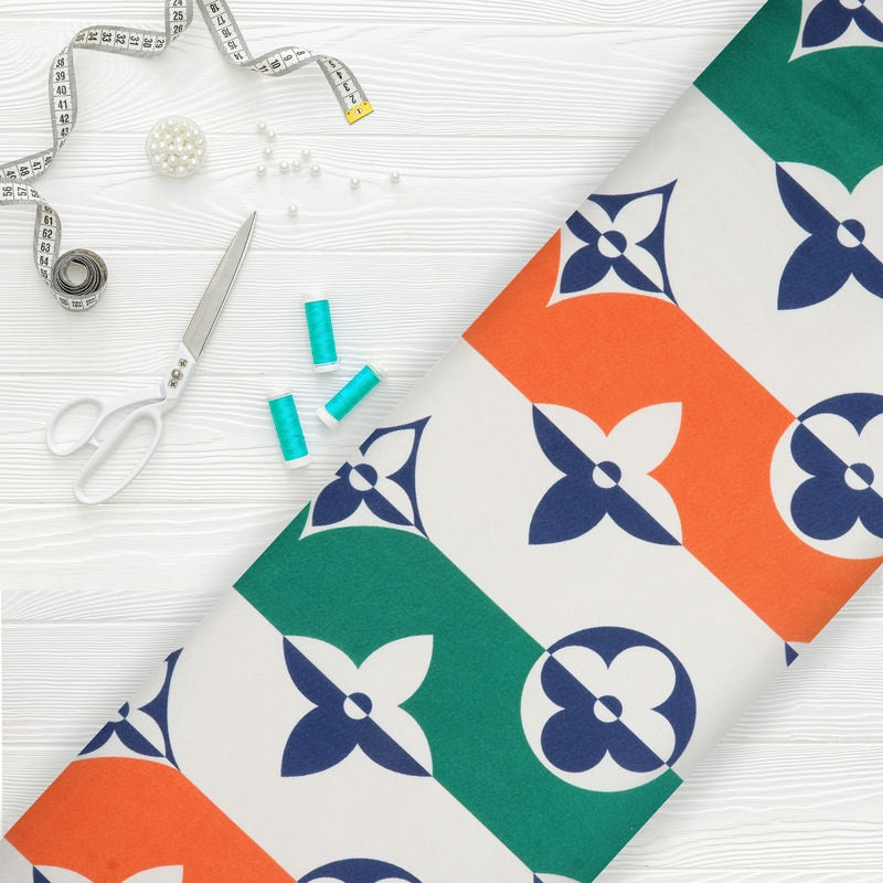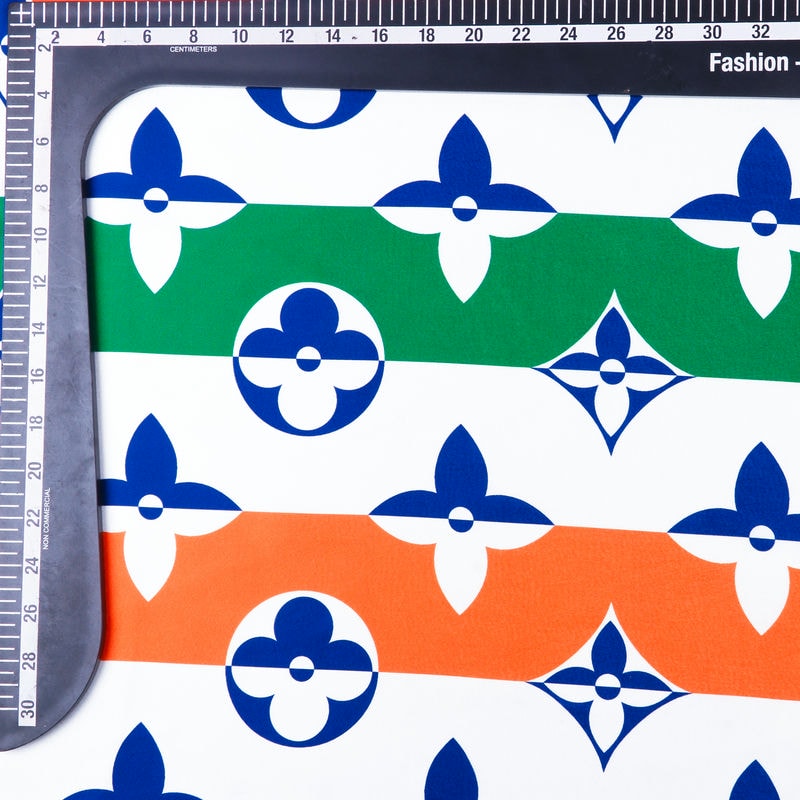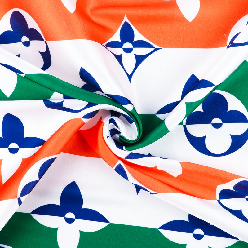Tricolor Vuitton Pattern Digital Print Japan Satin Fabric
