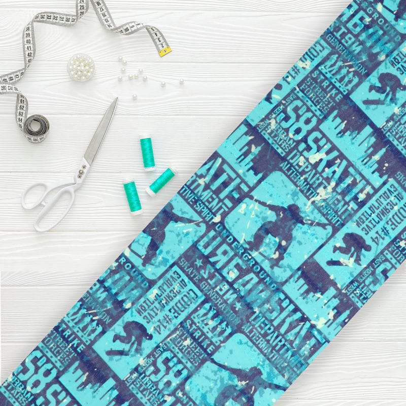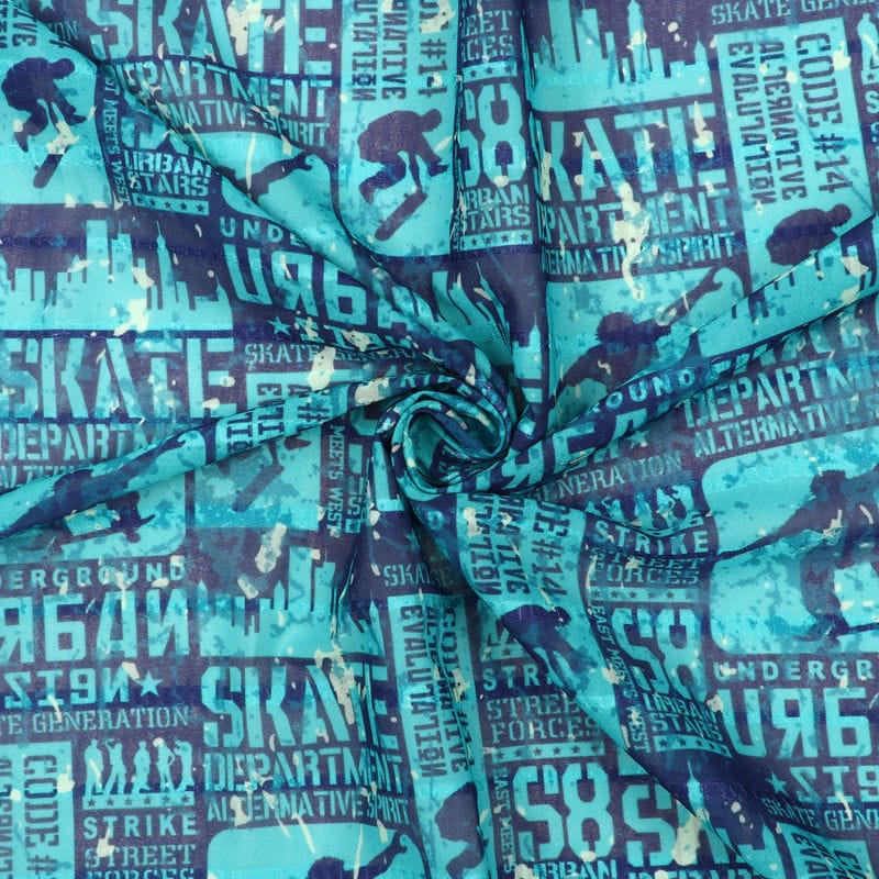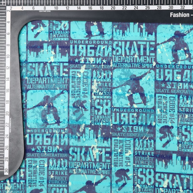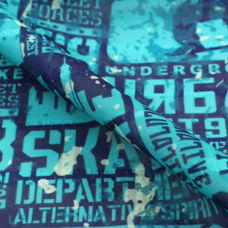 Turquoise And Blue Graphiti Pattern Digital Print Stripe Jacquard Georgette Fabric