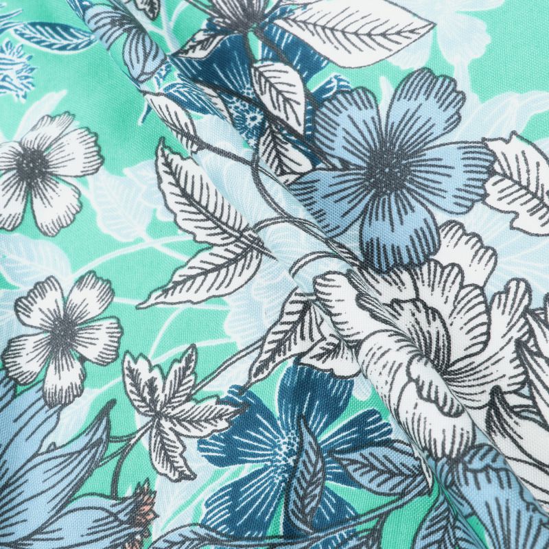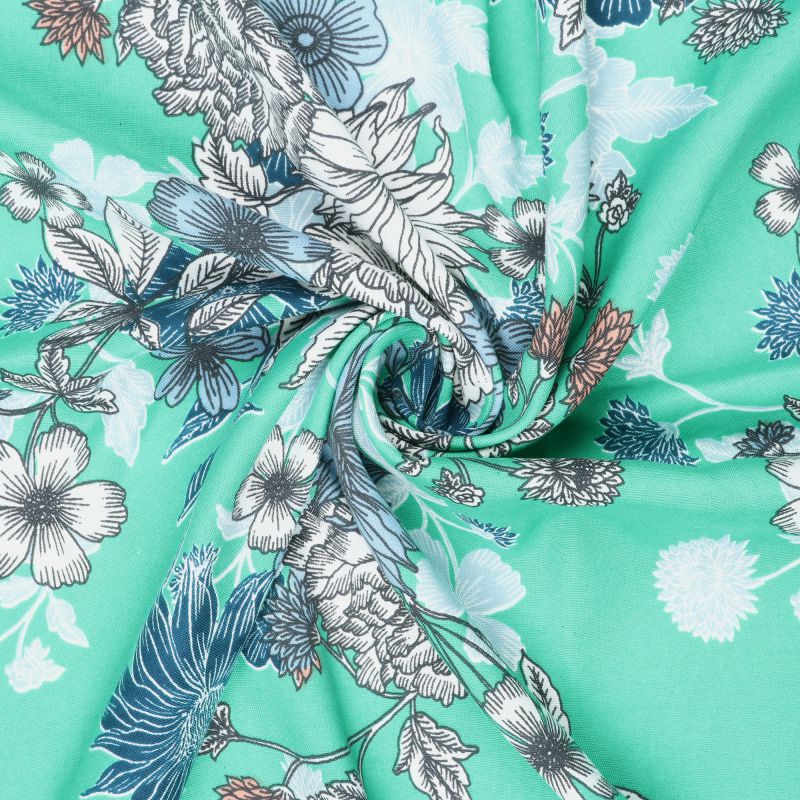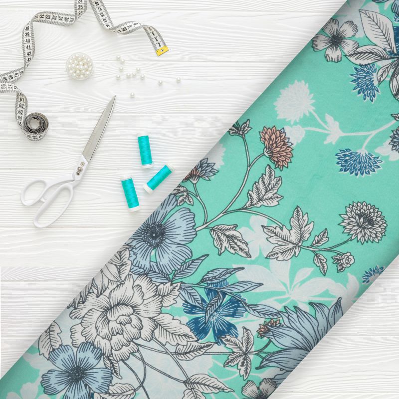 Top QualityTurquoise And White Floral Pattern Digital Print Rayon Fabric