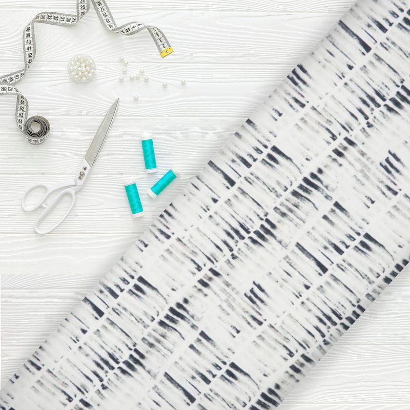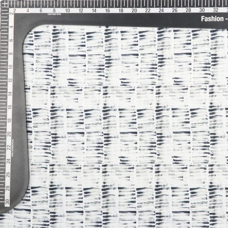 White And Black Abstract Pattern Digital Print Rayon Fabric