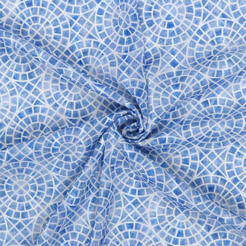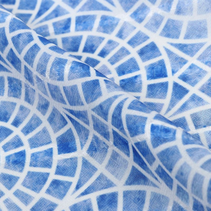 White And Blue Geometric Pattern Digital Print Stripe Jacquard Georgette Fabric