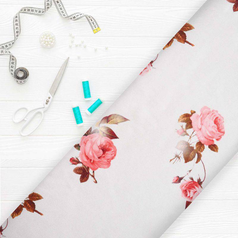 White And Coral Pink Floral Pattern Digital Print Japan Satin Fabric