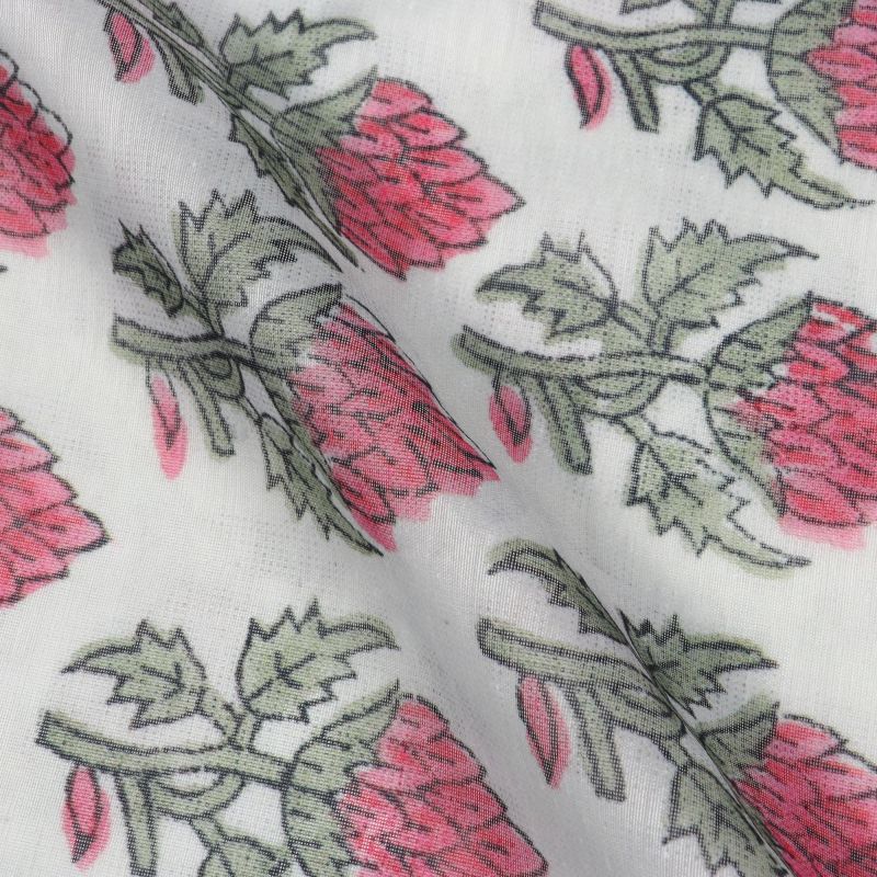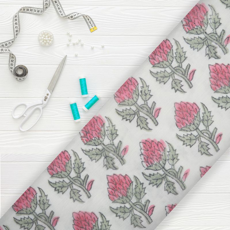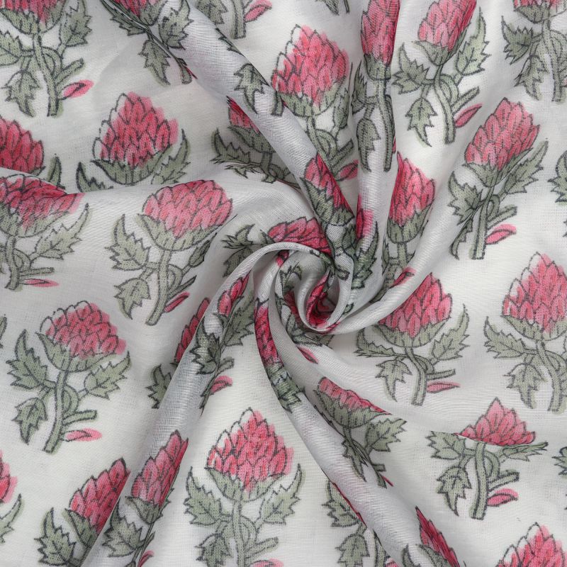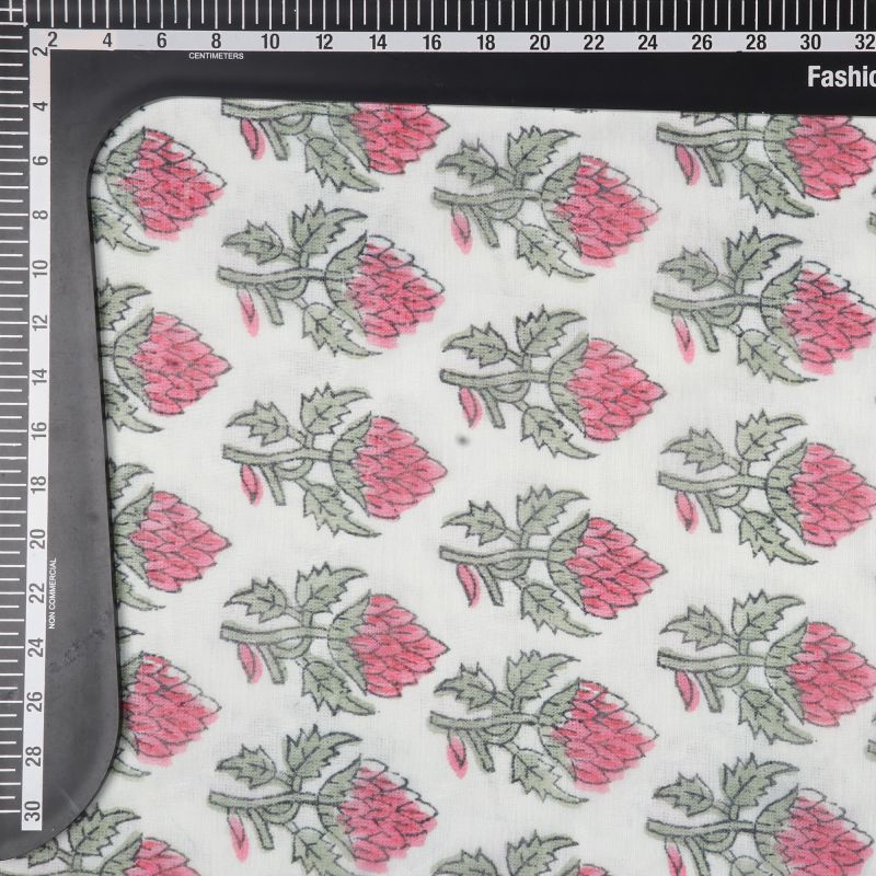 White And Dark Pink Floral Pattern Digital Print Chanderi Fabric