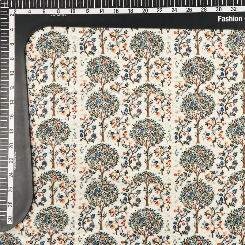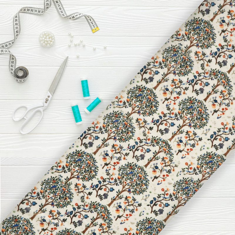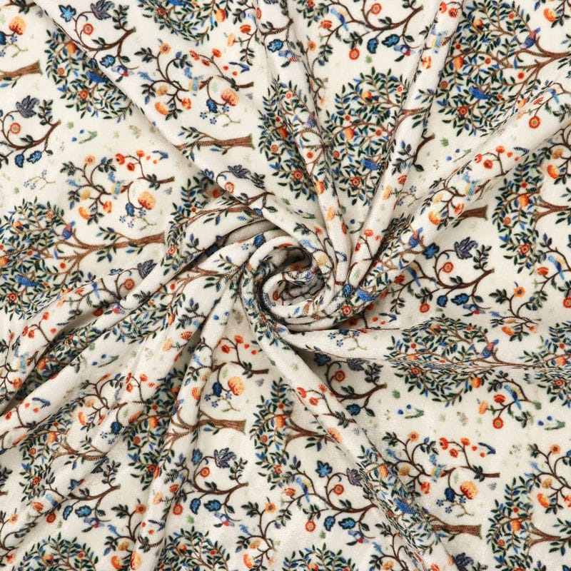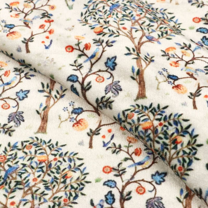 White And Green Floral Pattern Digital Print Velvet Fabric
