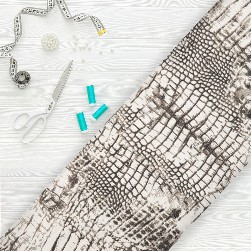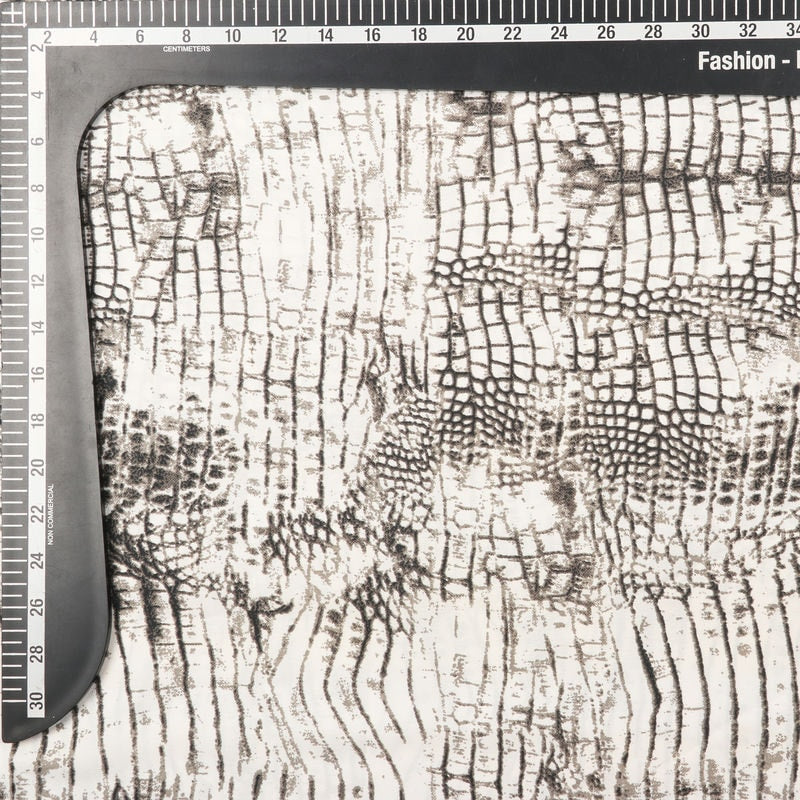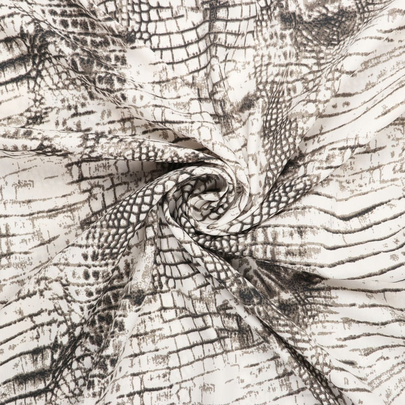White And Grey Snake Pattern Screen Print American Crepe Fabric