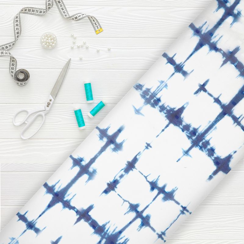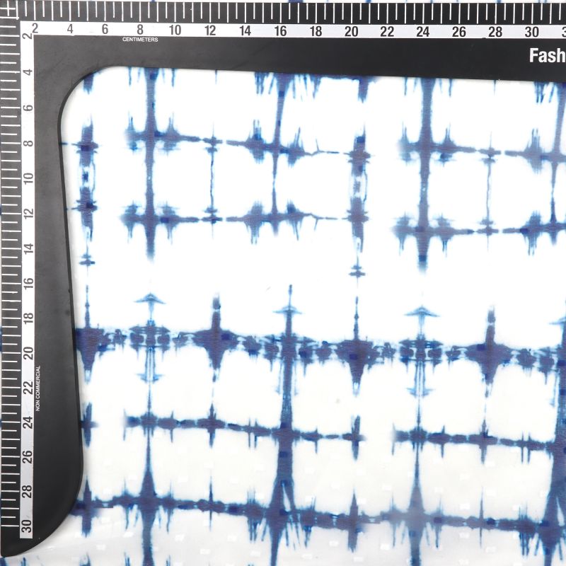 White And Navy Blue Abstract Pattern Digital Print Georgette Dobby Fabric