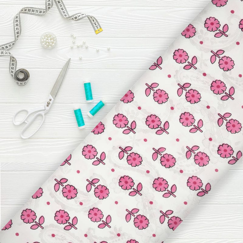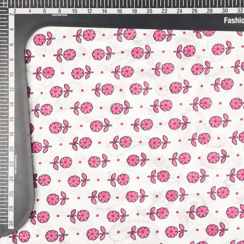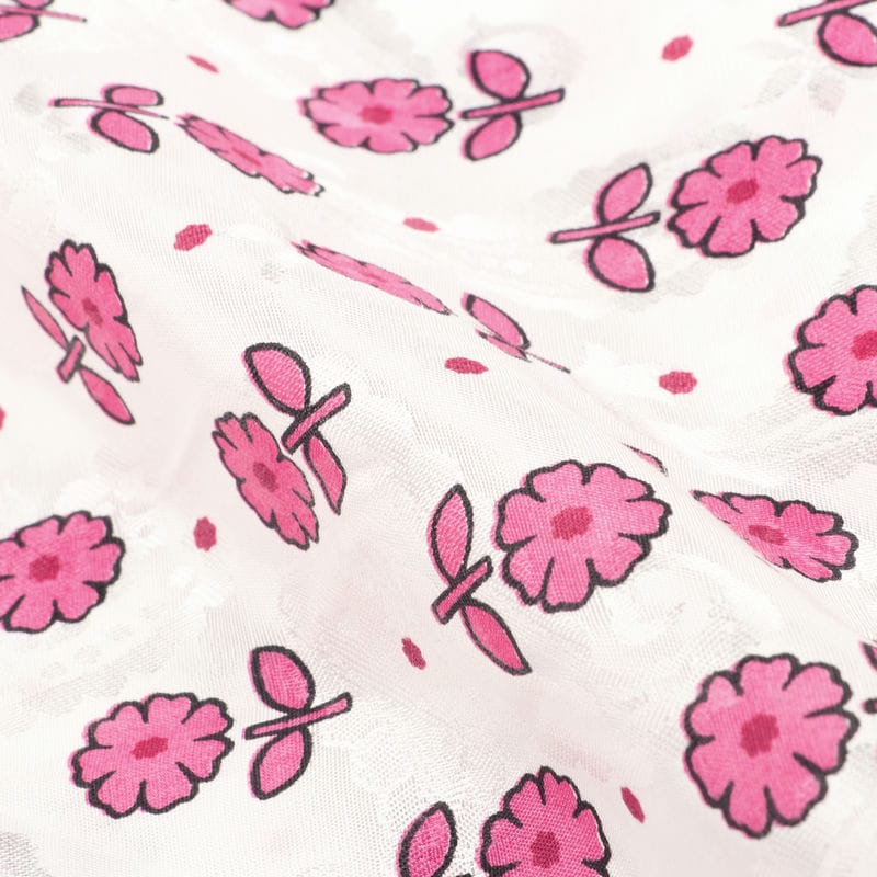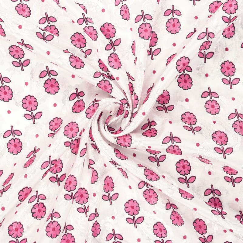 Top QualityWhite And Neon Pink Floral Pattern Screen Print Cotton Silk Jacquard Fabric
