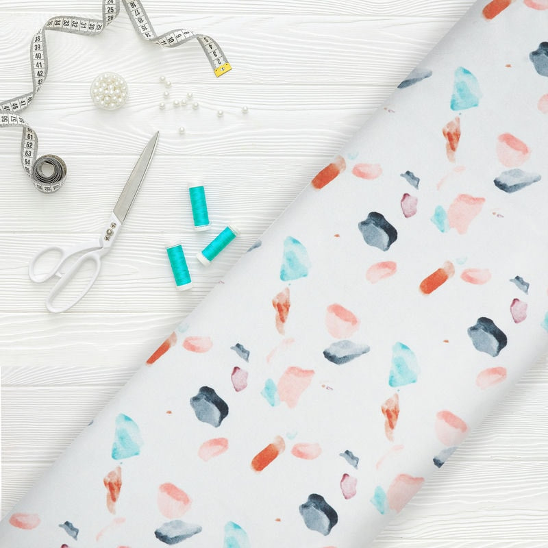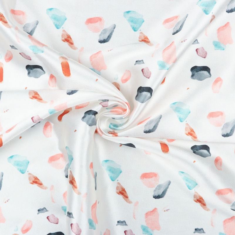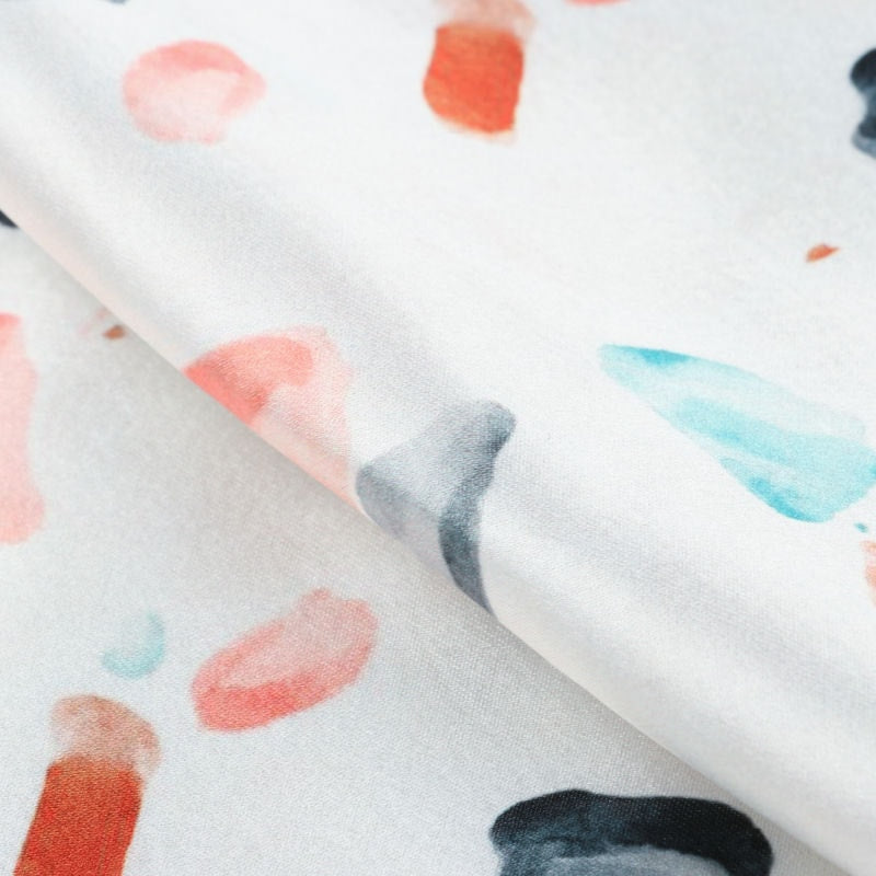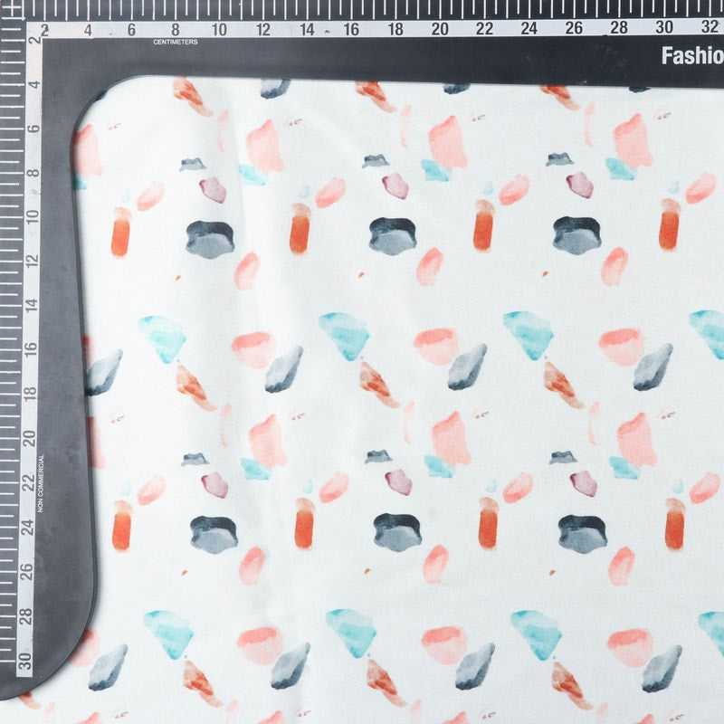 White And Orange Abstract Pattern Digital Print Japan Satin Fabric