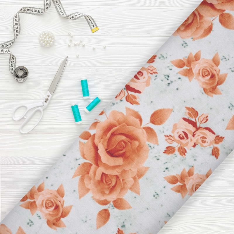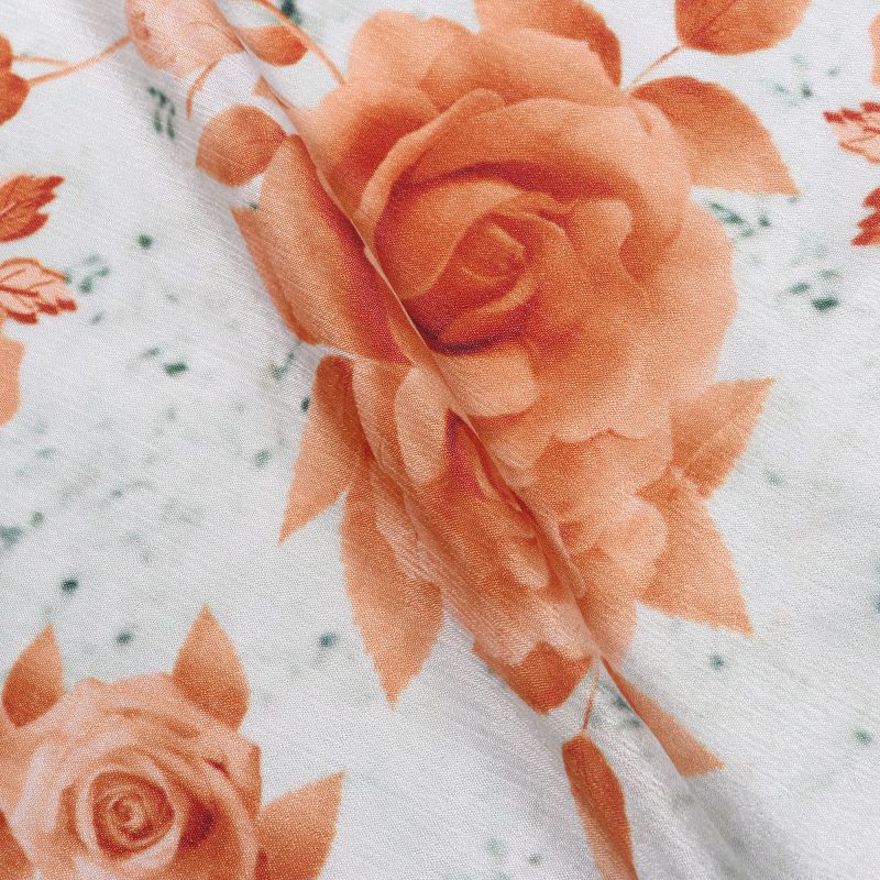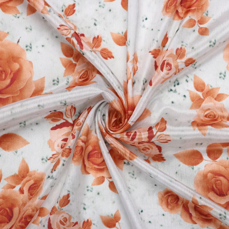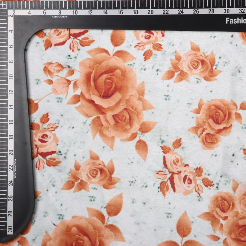 White And Orange Floral Pattern Digital Print Chinon Chiffon Fabric