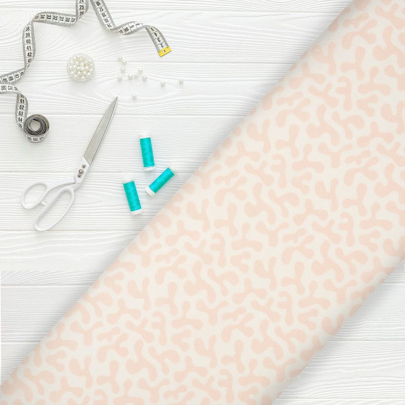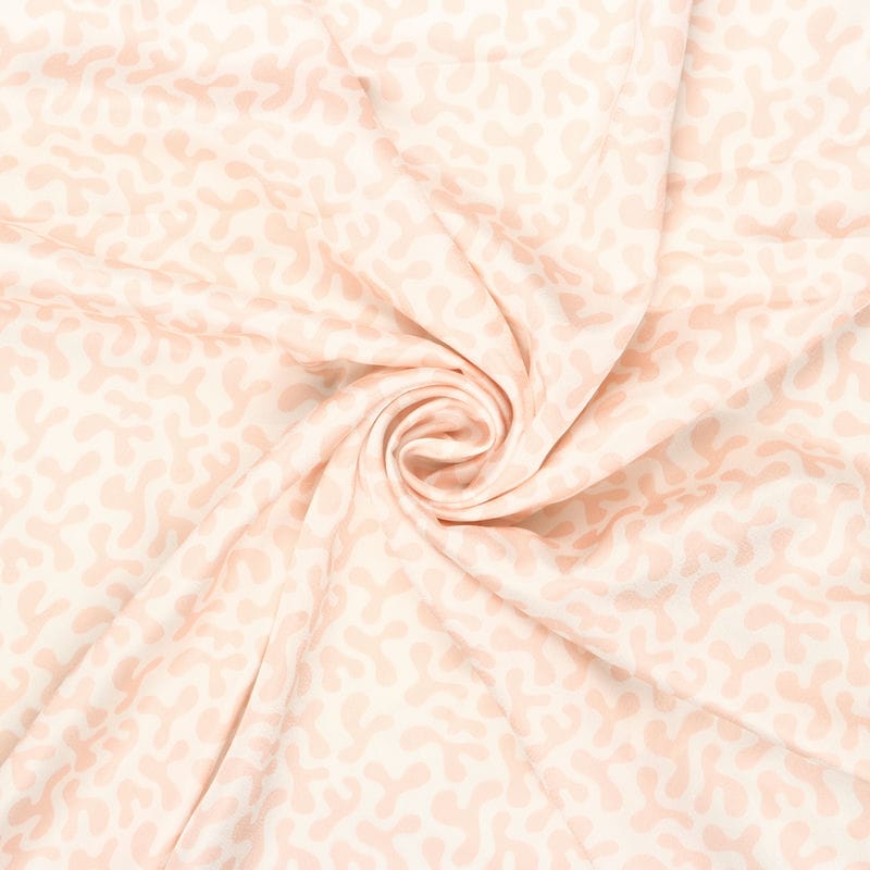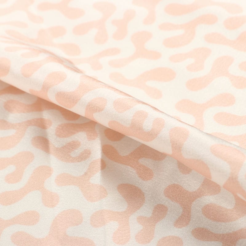 White And Peach Abstract Pattern Digital Print Japan Satin Fabric