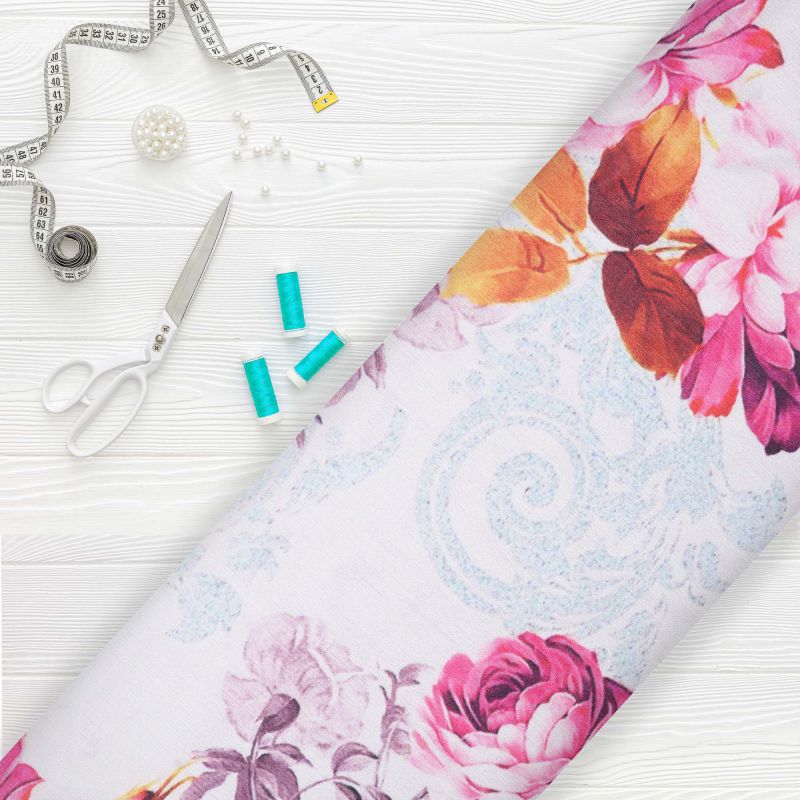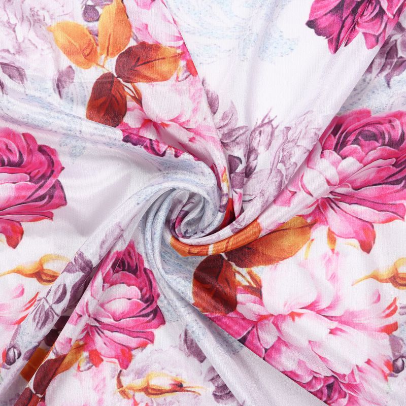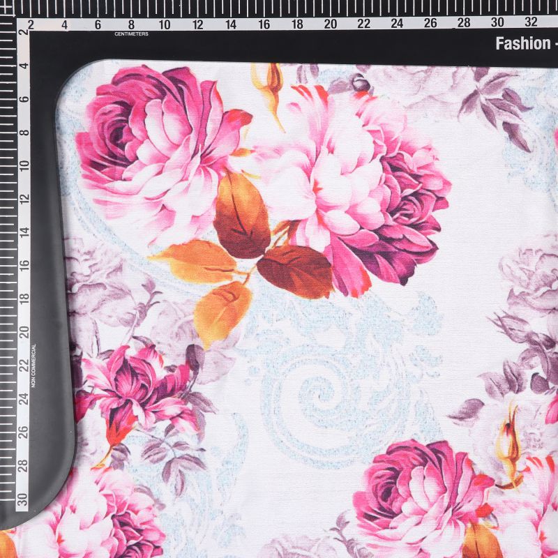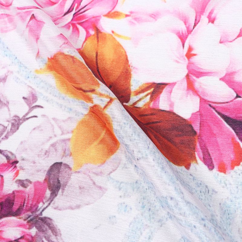 White And Pink Floral Pattern Digital Print Chinon Chiffon Fabric