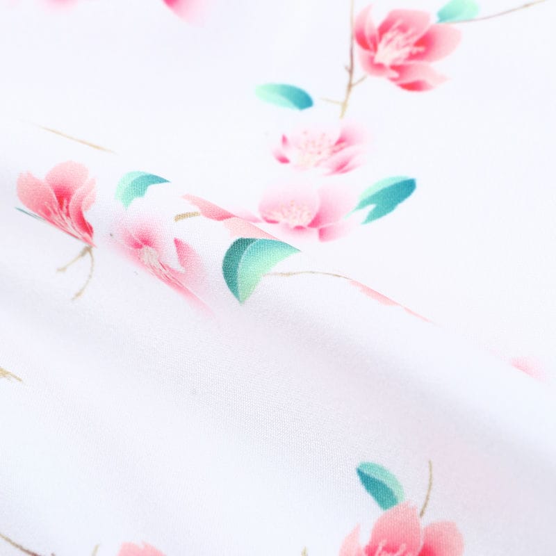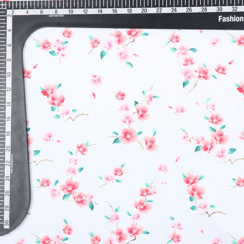 White And Pink Floral Pattern Digital Print Crepe Fabric