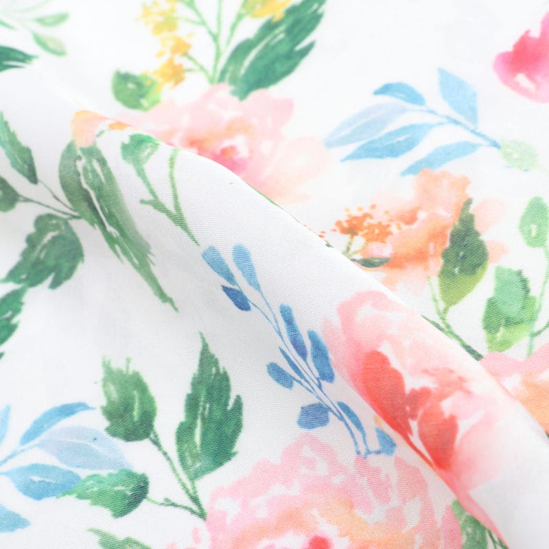 White And Pink Floral Pattern Digital Print Georgette Satin Fabric