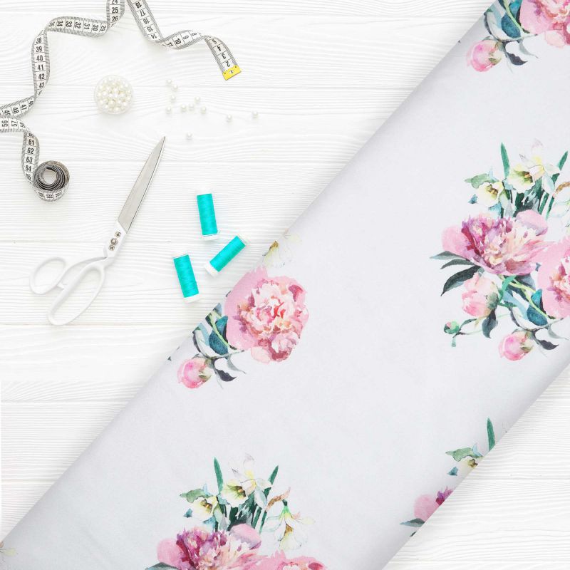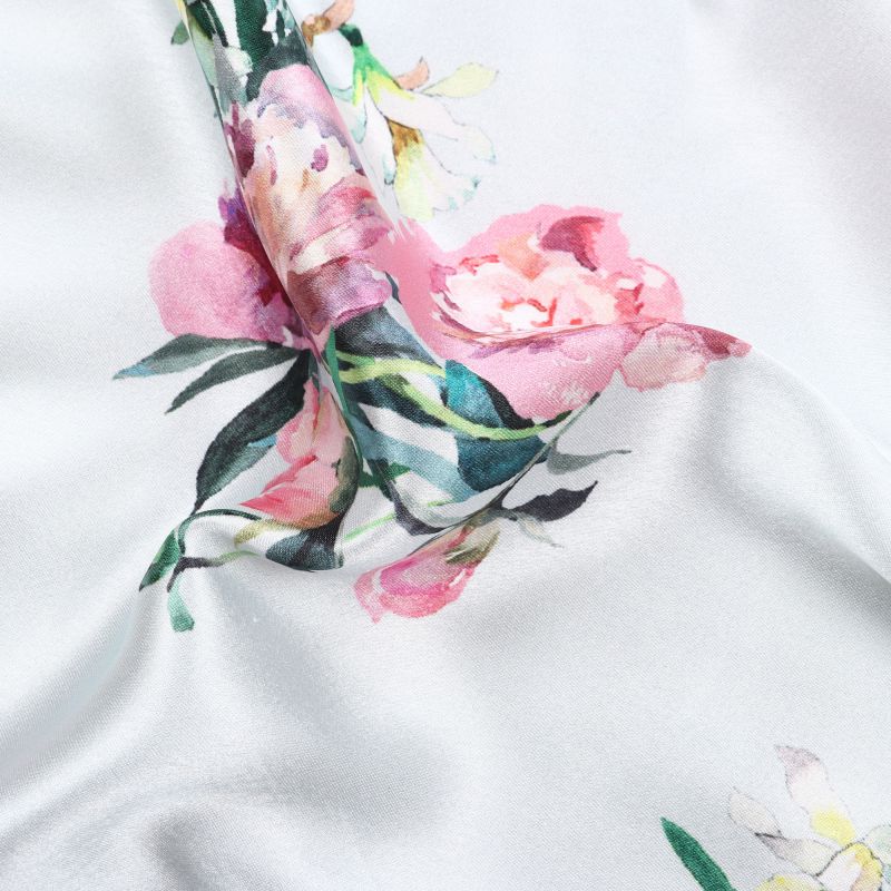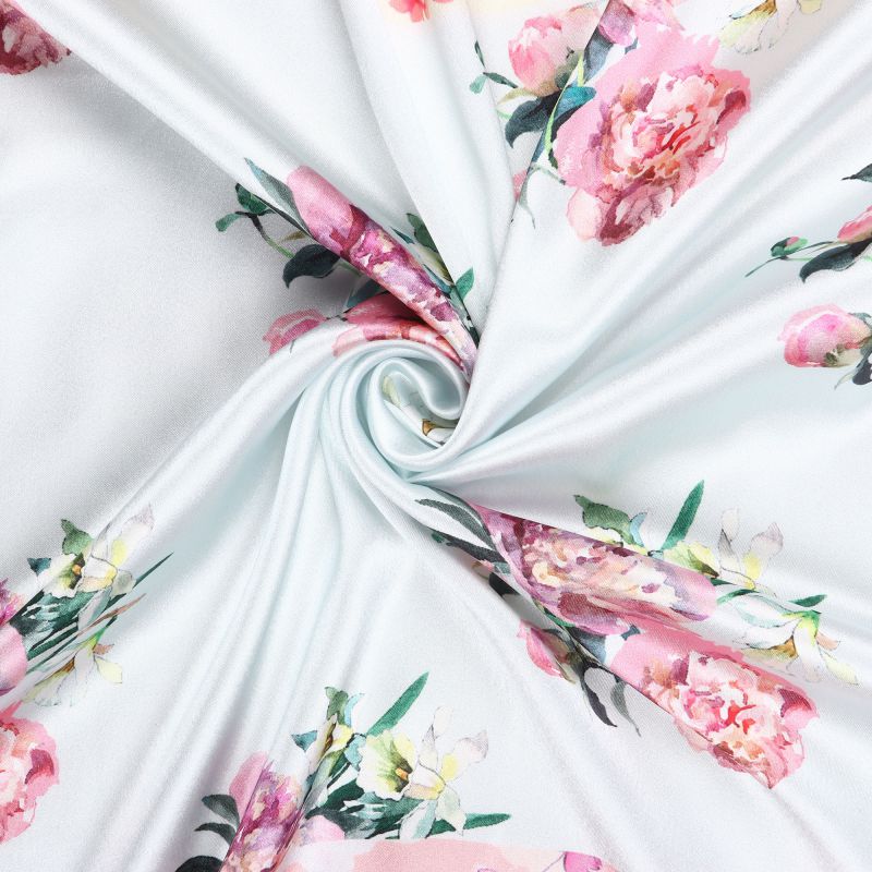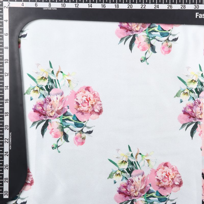 White And Pink Floral Pattern Digital Print Japan Satin Fabric