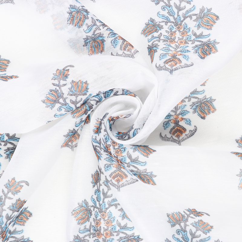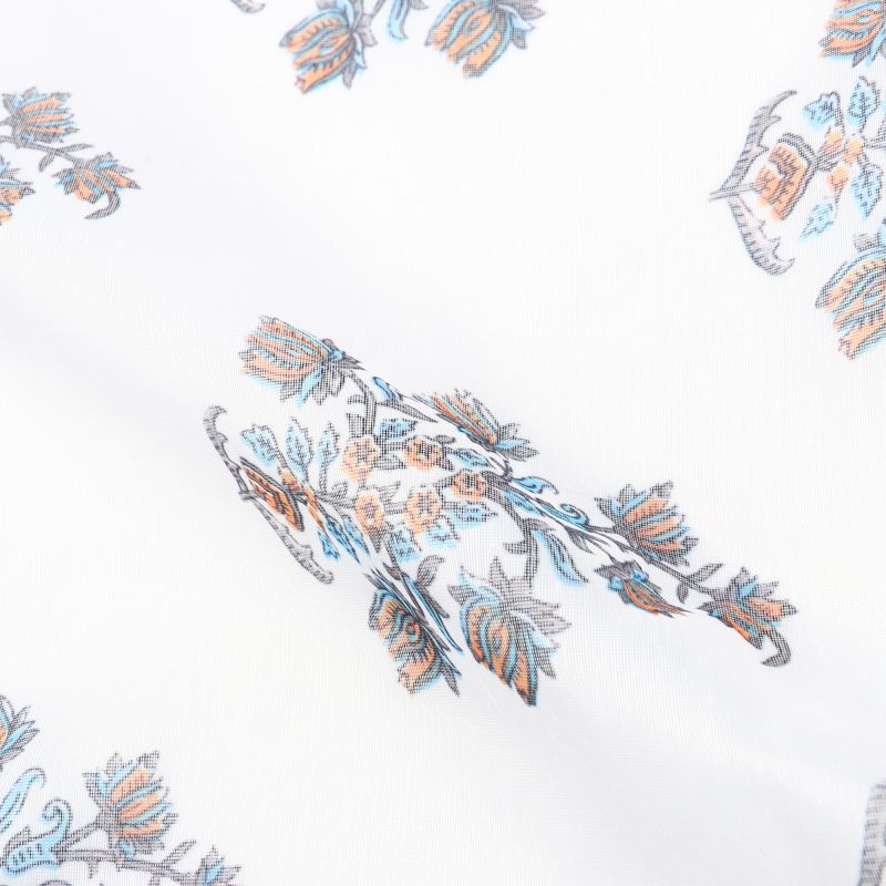 White And Sky Blue Floral Pattern Digital Print Chanderi Fabric