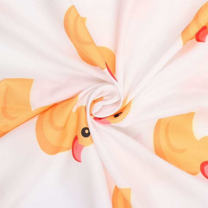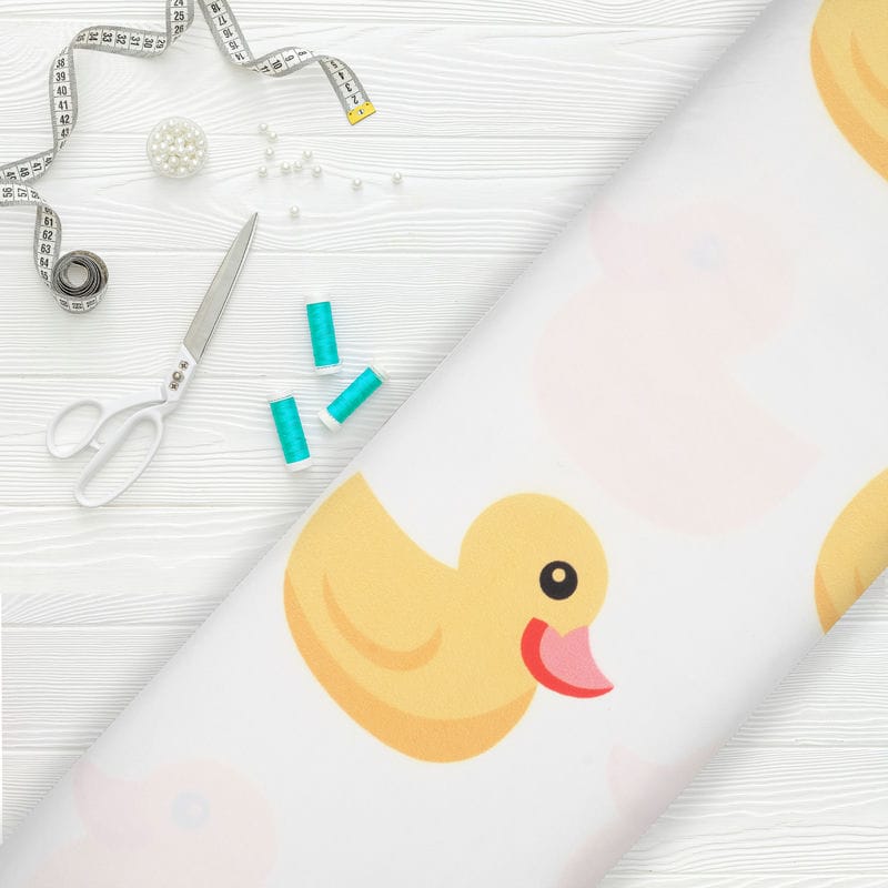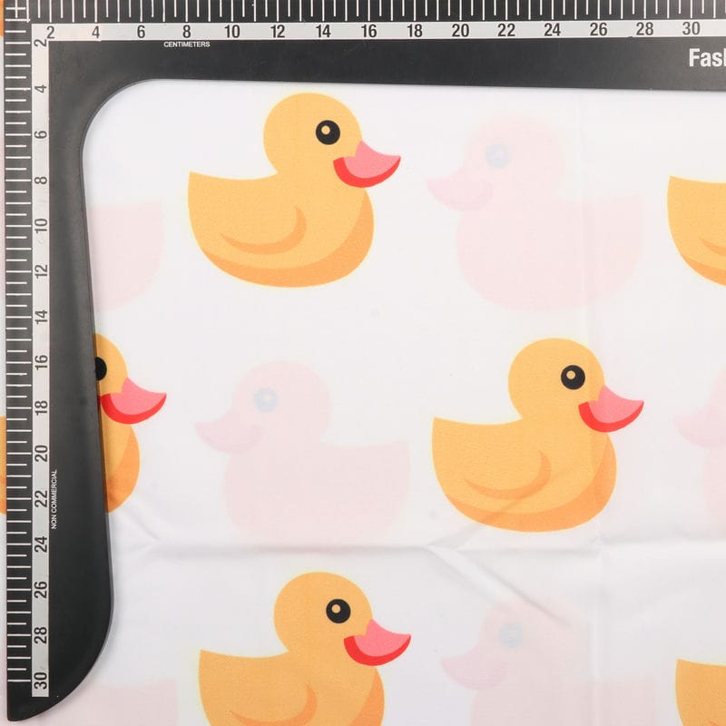 White And Yellow Duck Pattern Digital Print Crepe Fabric