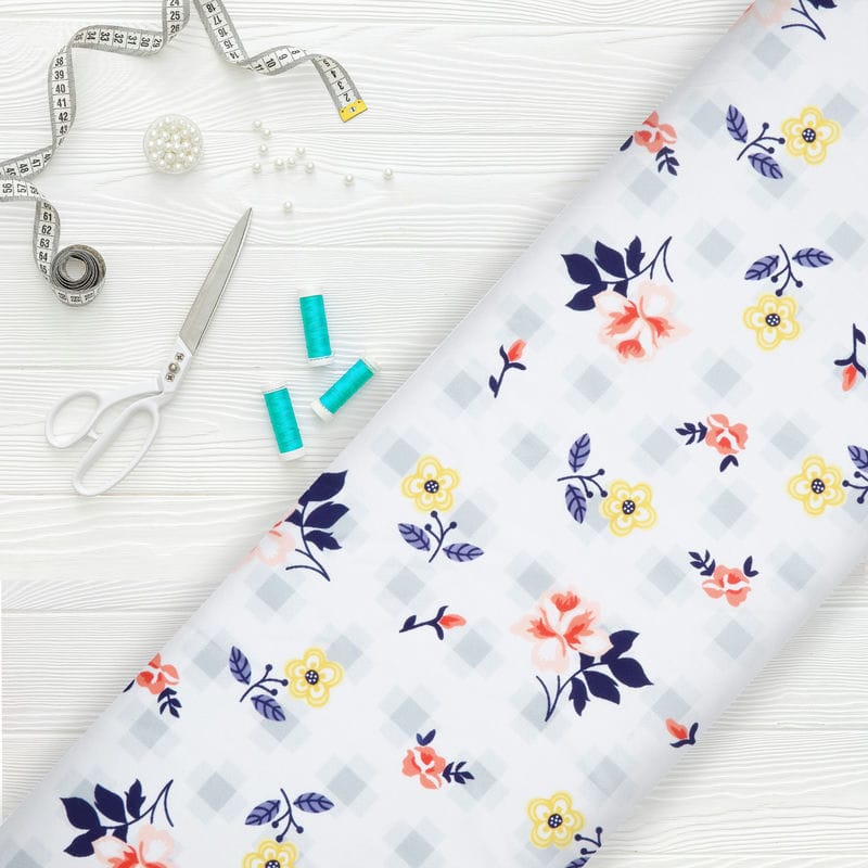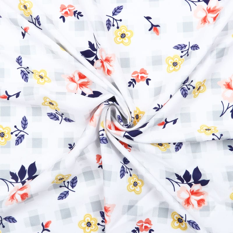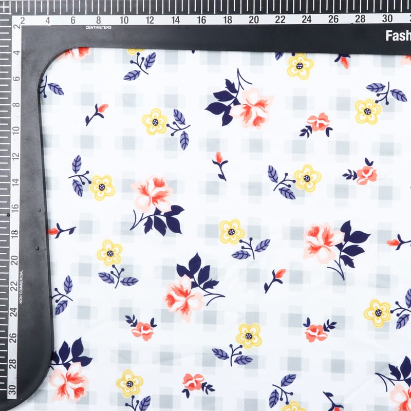 White And Yellow Floral Pattern Digital Print Crepe Fabric
