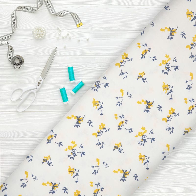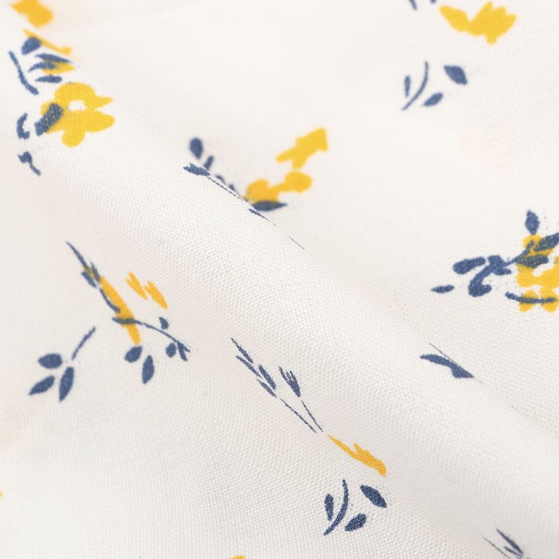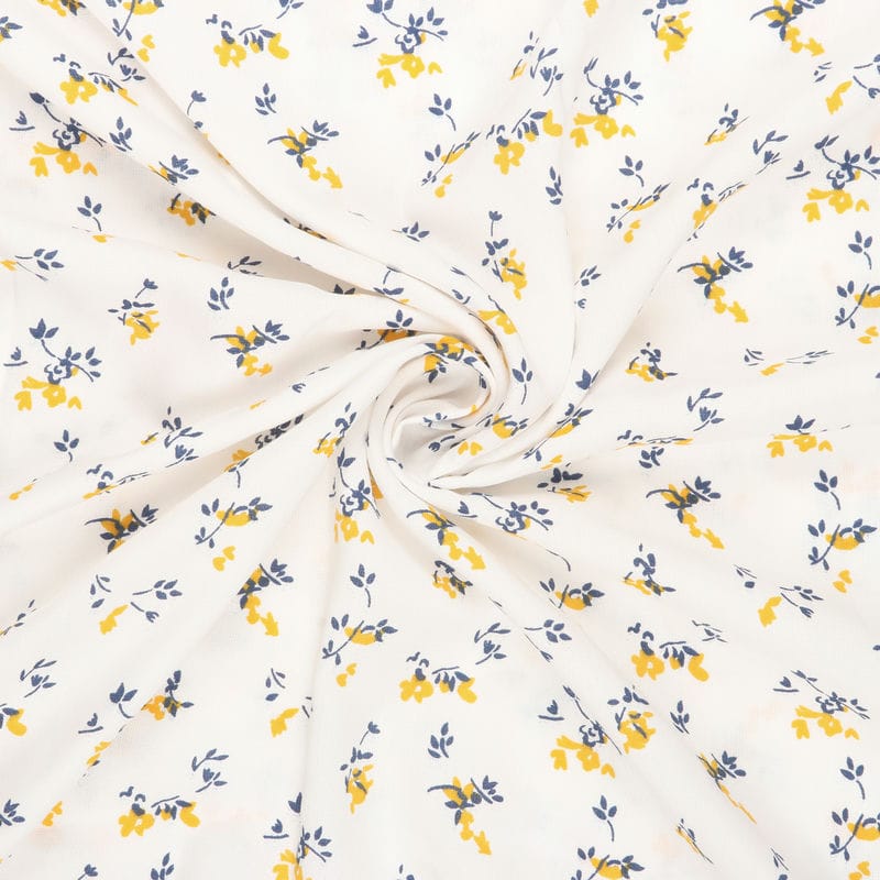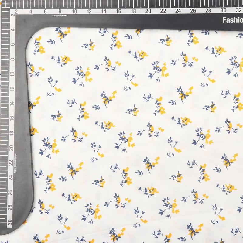 White And Yellow Floral Pattern Screen Print Rayon Fabric (Bulk)
