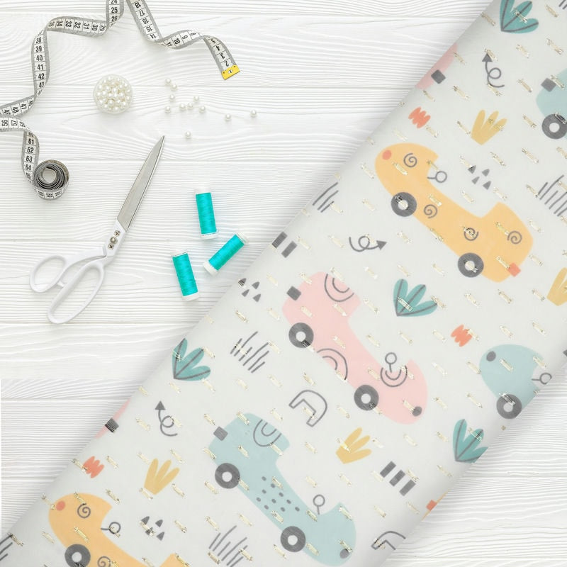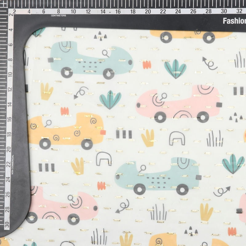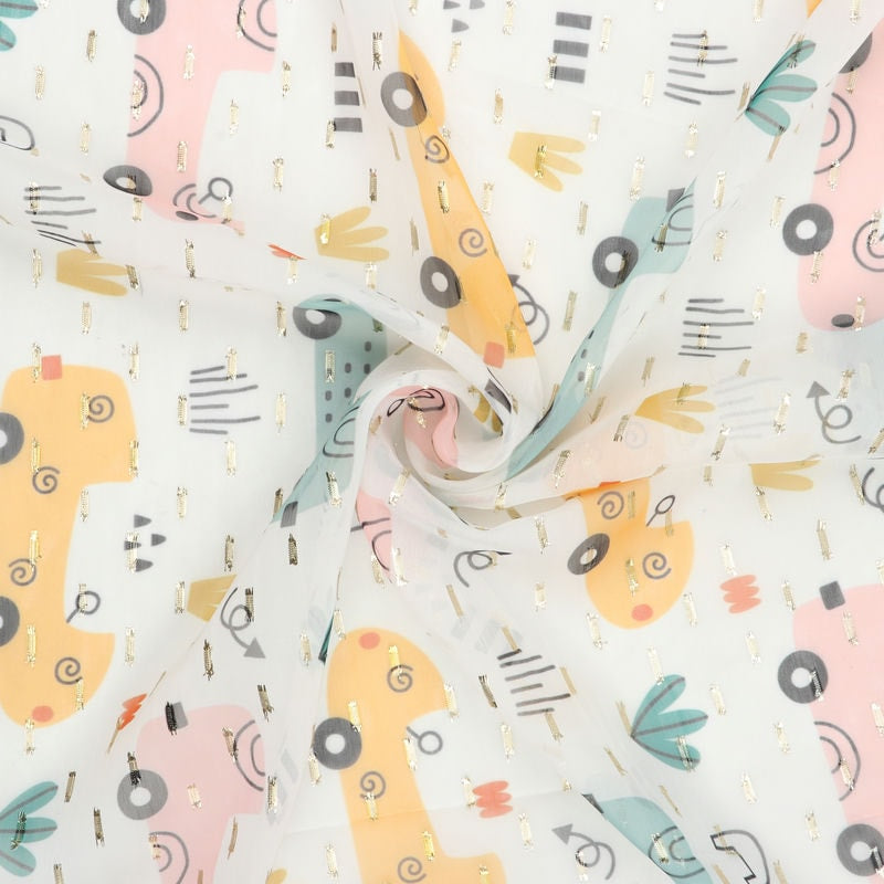 White And Yellow Kids Pattern Digital Print Chiffon Golden Dobby Fabric