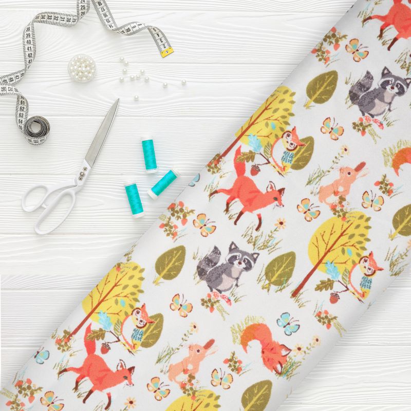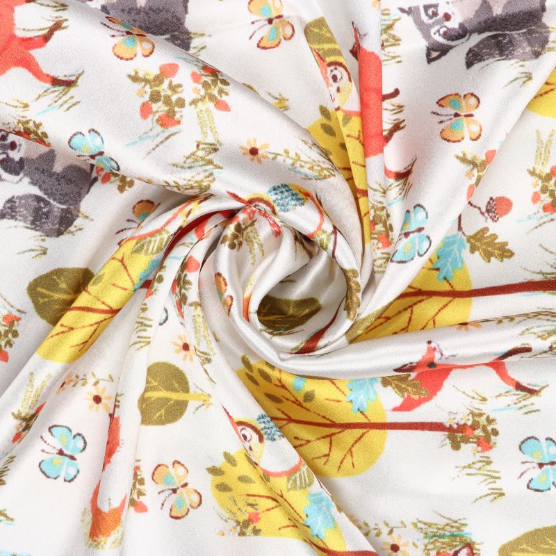 White And Yellow Quirky Pattern Digital Print Japan Satin Fabric