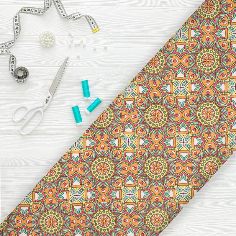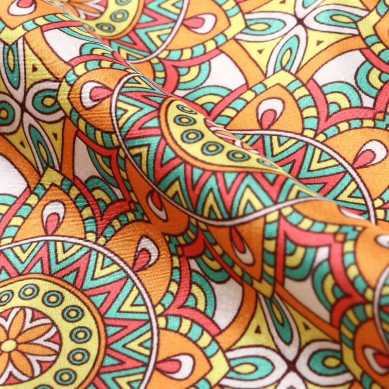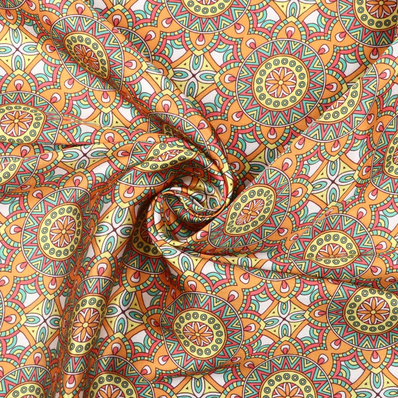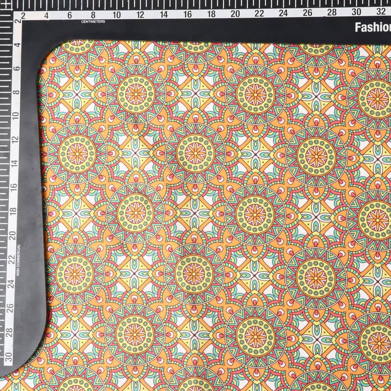 Yellow And Green Mandala Pattern Digital Print Japan Satin Fabric