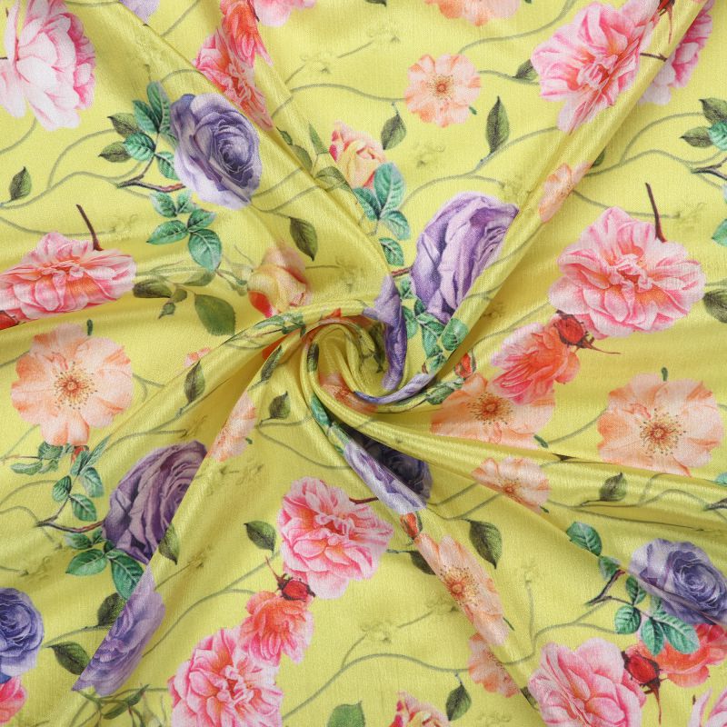 Yellow And Lavender Floral Pattern Digital Print Chinon Chiffon Fabric