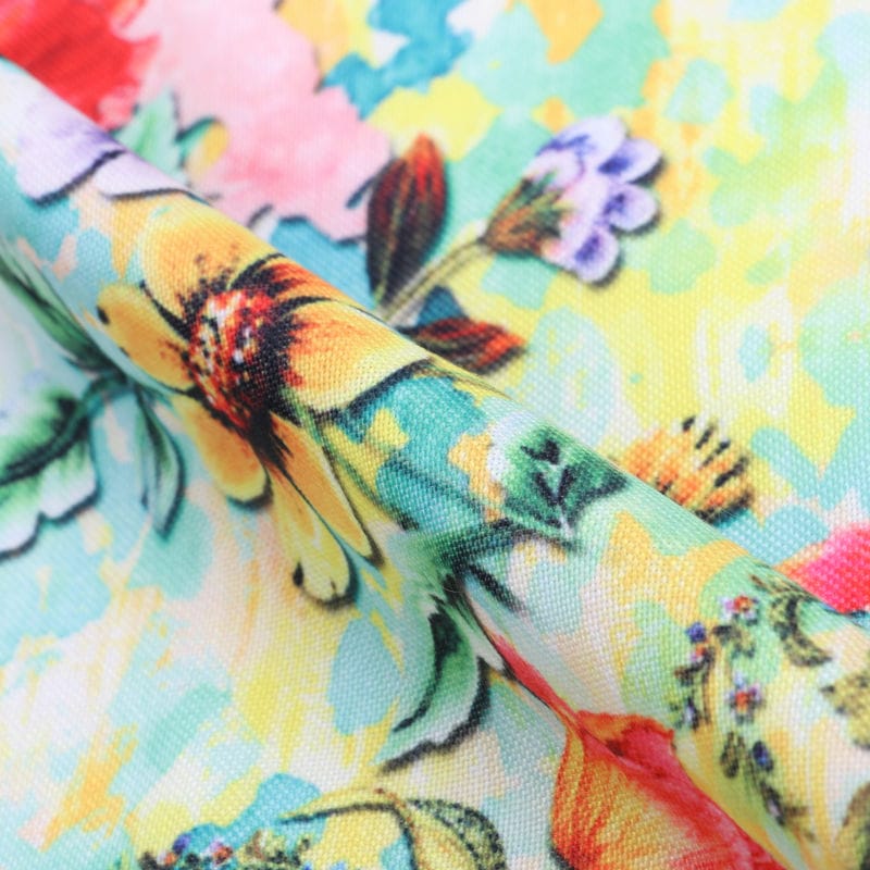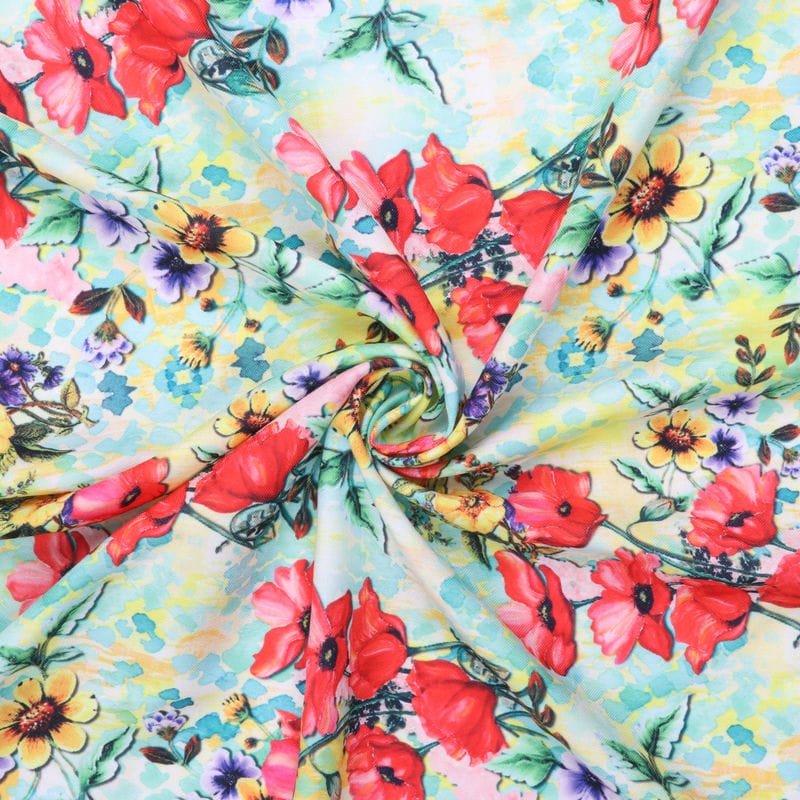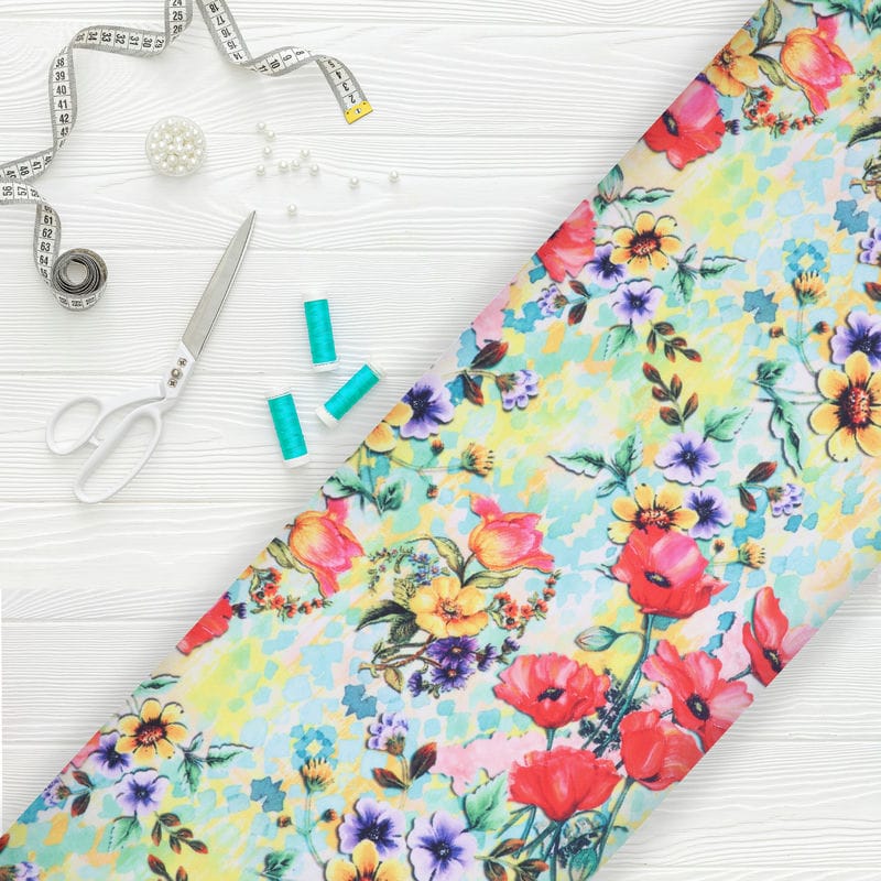 Yellow And Red Floral Pattern Digital Print Rayon Fabric