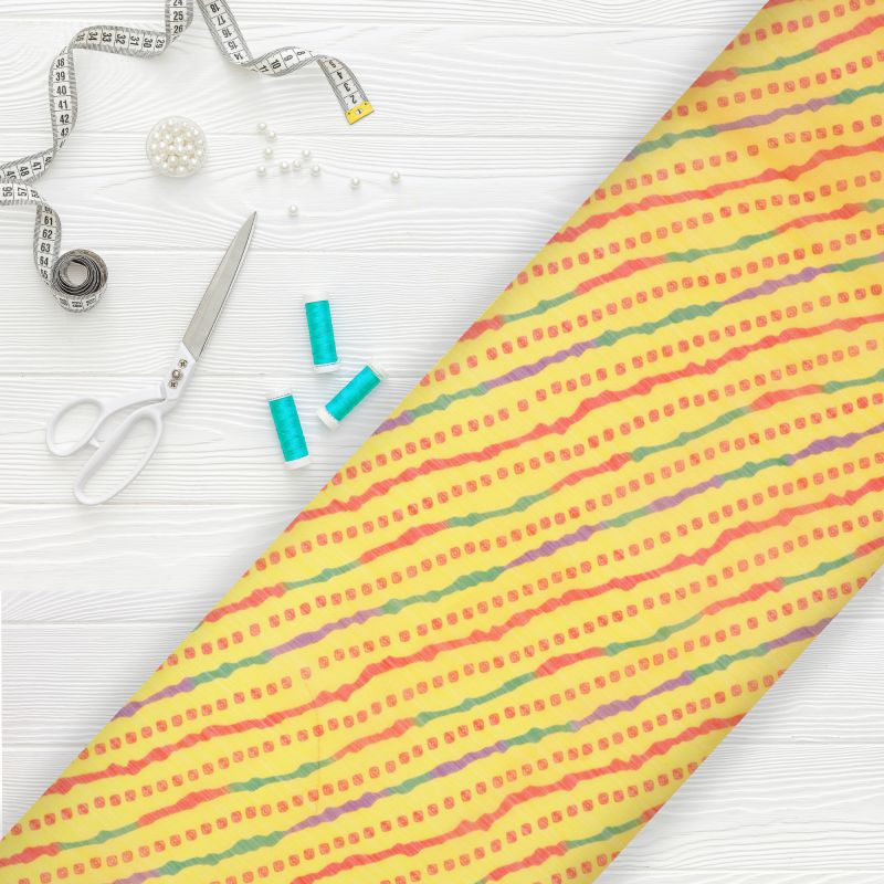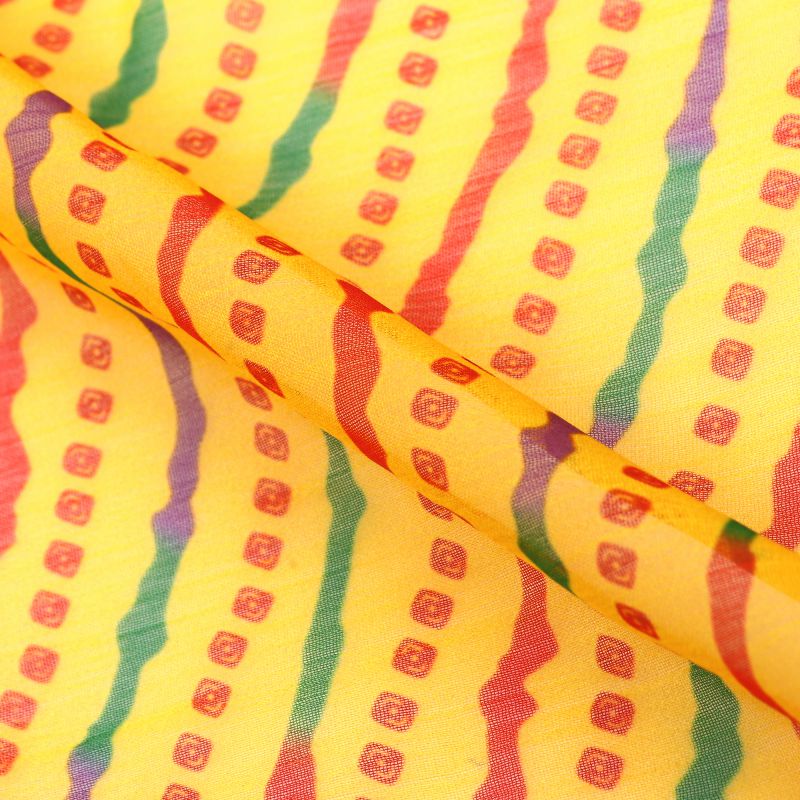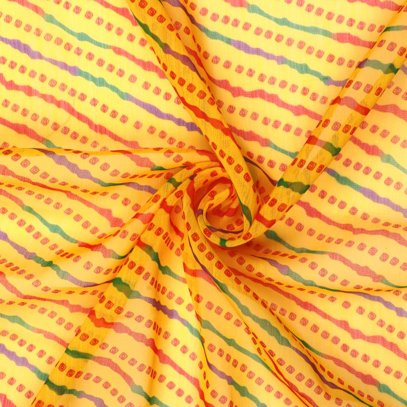 Yellow And Red Leheriya Pattern Digital Print Silver Chiffon Fabric