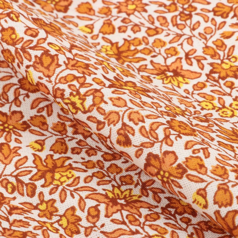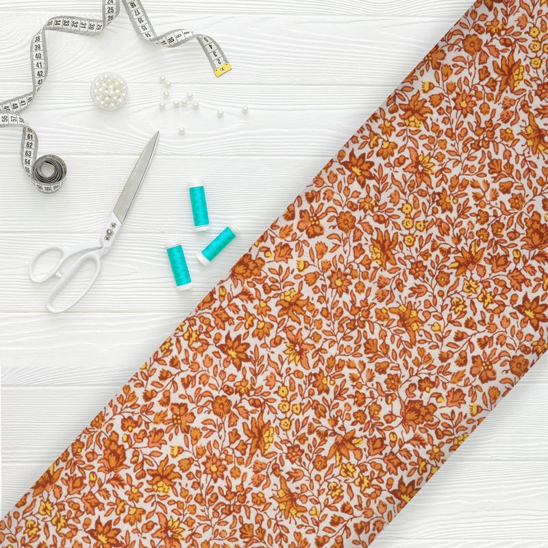 Yellow And White Floral Pattern Screen Print Rayon Fabric